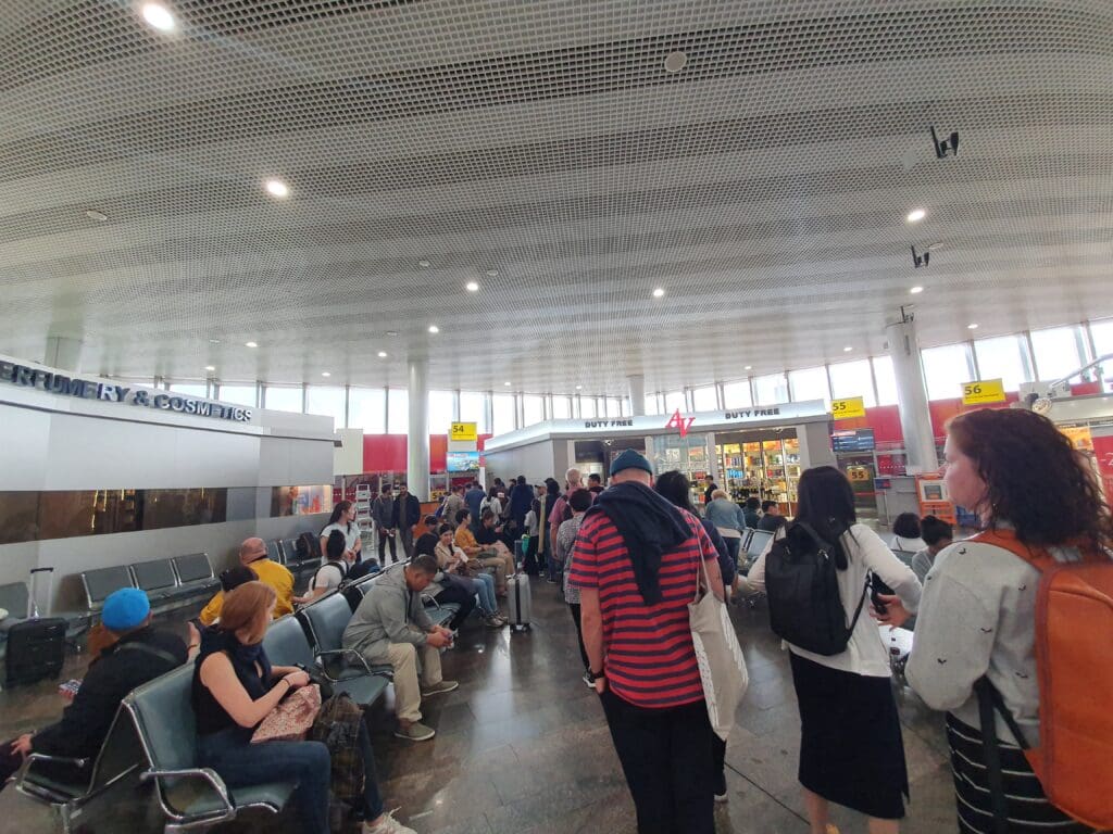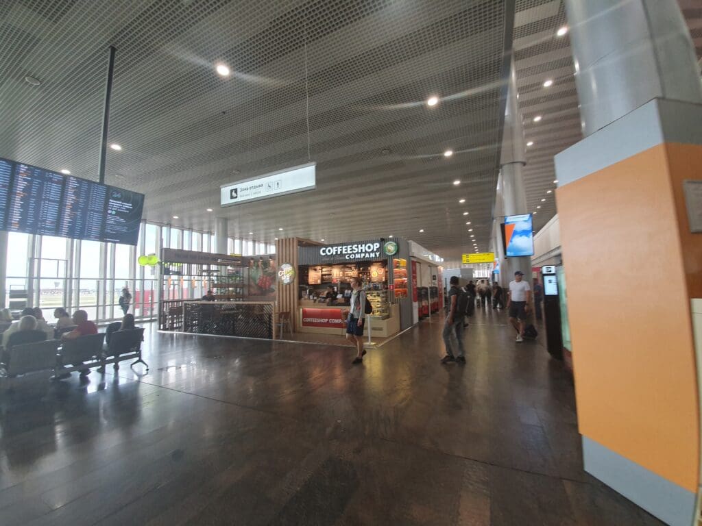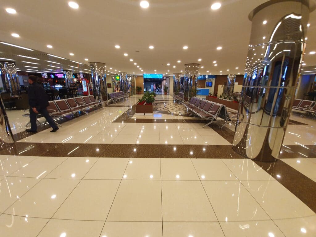 Following a drama-free journey, the driver dropped me off in the car park where handed over the inflated unofficial fare of 30,000 tugriks (£8). Once I handed over a set of crumbled notes, I made my way into the terminal through the entrance to the landside arrivals area before heading up the stairs to the departure floor. Failing to reassure me that I would be in for a smooth journey to Germany, once there I was greeted by scenes of absolute chaos, with passengers absolutely everywhere and few staff members in sight. Despite this, a quick check of the departure boards revealed that that day’s service to Berlin via Moscow was still scheduled to depart on time, however, with passengers to be allowed to enter the international check-in hall, I had little to do. I therefore decided to grab my first coffee of the day and have a stroll around.