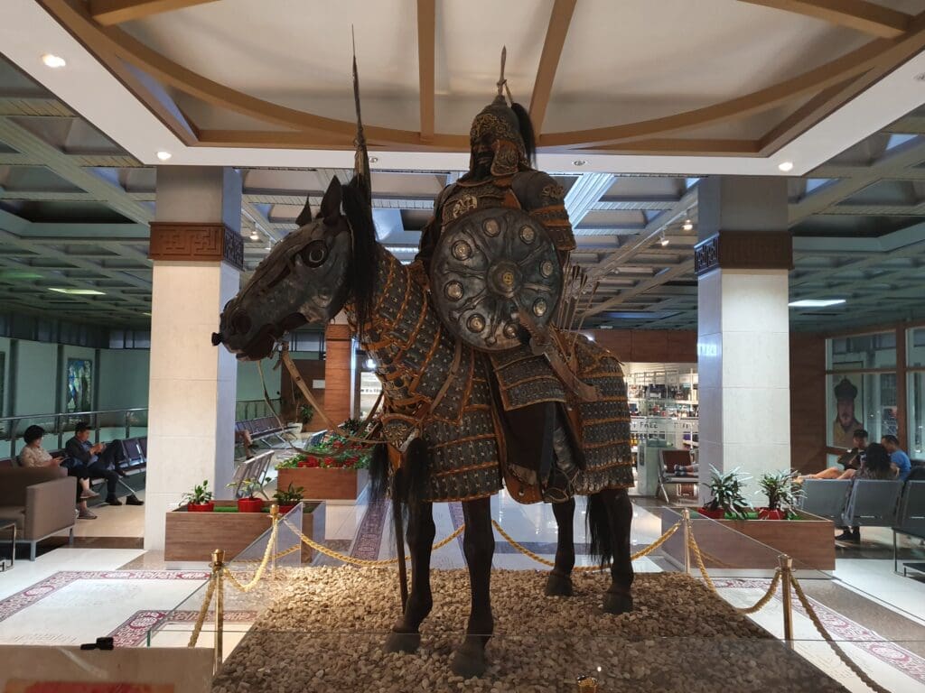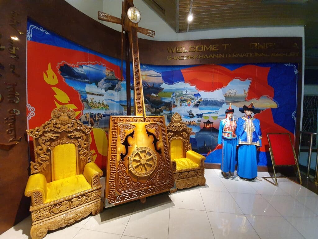 Given my slow journey through the airport, I expected plenty of queuing at both security and immigration. However, much to my delight, both of these were quick and painless processes and I steamed through in no more than five minutes. Once the tough stony faced immigration officer returned my passport, I was free to explore the delights of Ulaanbaatar’s airside departure area. From immigration, I made my way up the escalators to the main portion of the terminal where it soon became clear that more has been invested in this than the landside area. Whilst it is highly unlikely that the terminal will be winning any awards in the near future, the terminal’s airside area appeared to be far smarter, more modern and cleaner than the landside area and was home to a respectable number of cafés and shops. One of the terminal’s more interesting and unique features consisted of a small exhibition space displaying historic artefacts from across Mongolia as well as several mannequins. That morning, my only real complaint about the airside area was the fact that none of the toilet doors appeared to lock! Following a quick stroll, I took a seat on one of the comfortable leather sofas conveniently located next to a charging point where I waited for my flight.