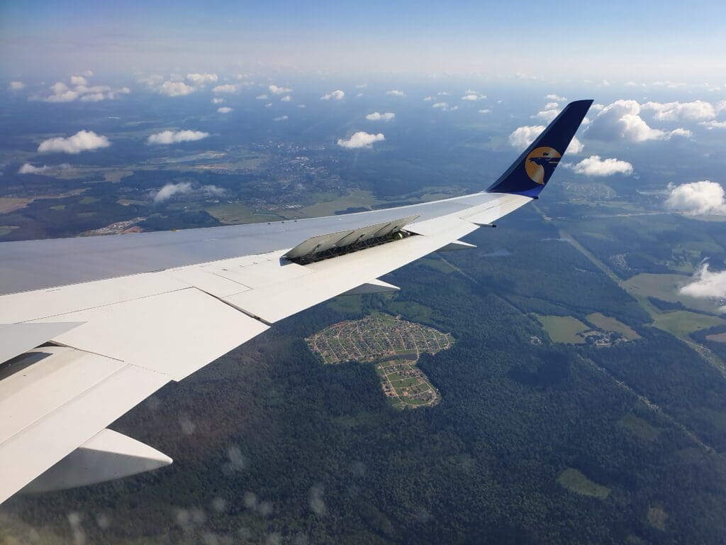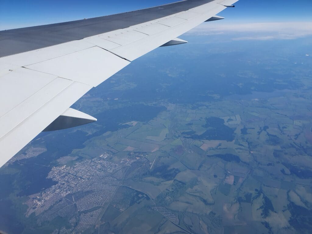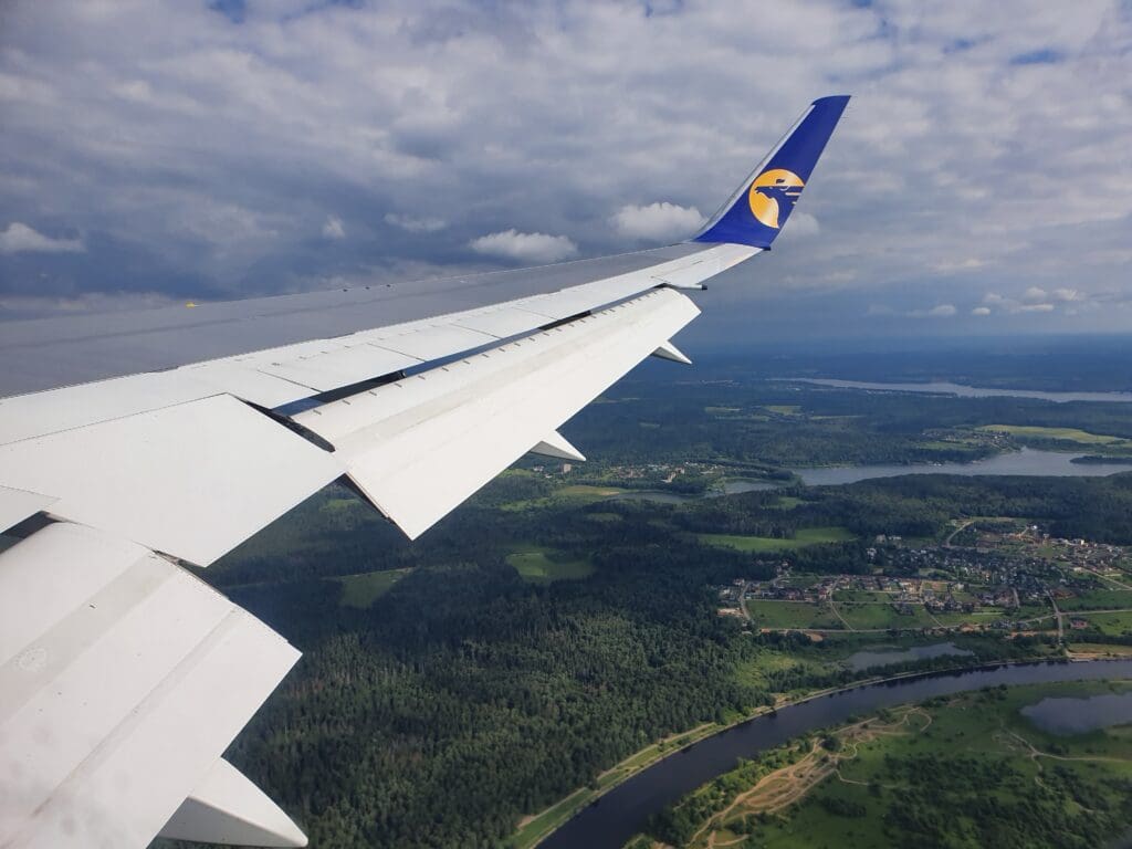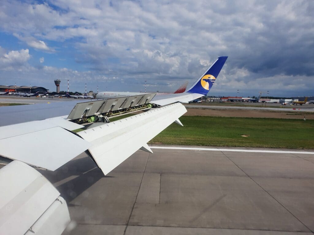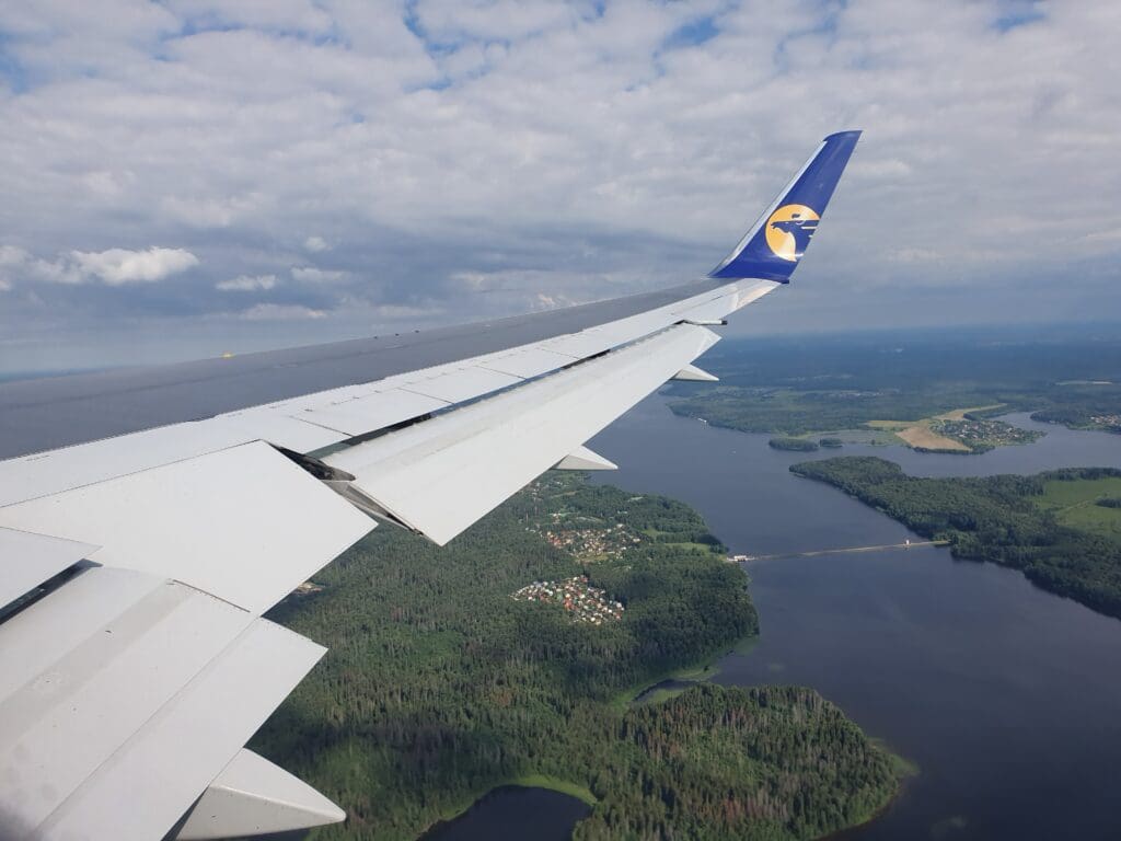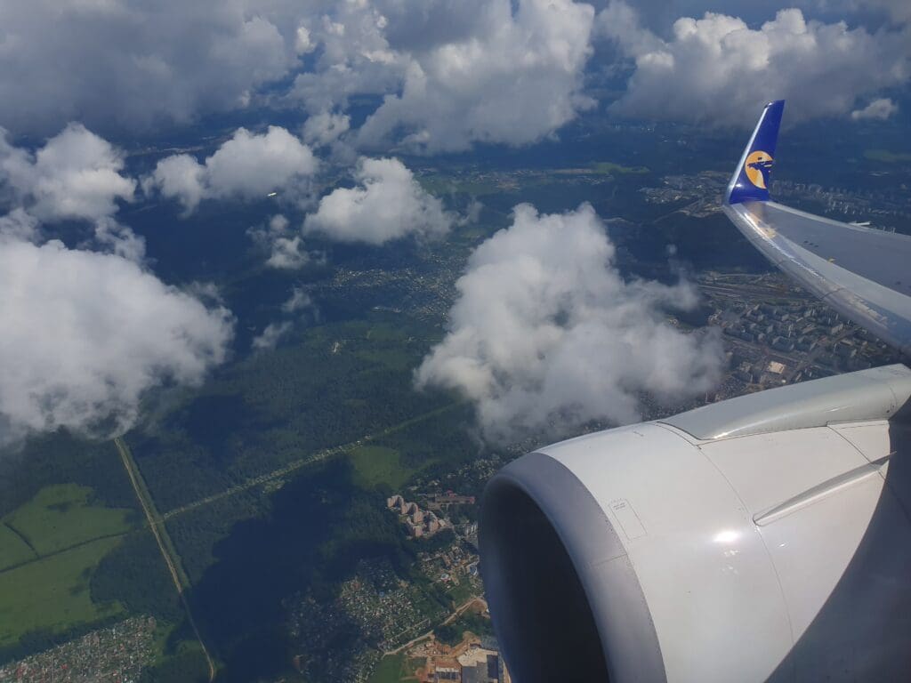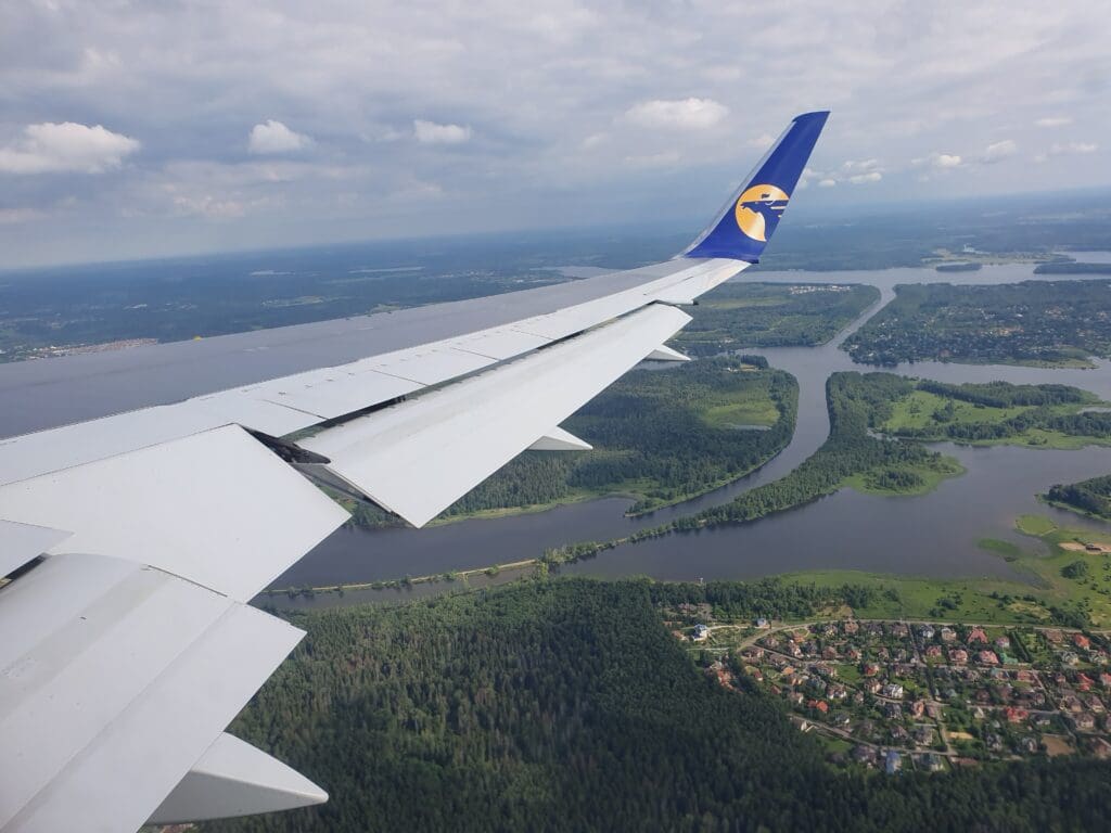 As the Boeing 767 passed through 10,000 feet, the flaps were partially extended and Moscow’s 333-kilometre-long A-107 road came into view. At this point in the flight, those on the opposite side of the aircraft would have most likely been treated to decent views of Russia’s capital. However, from my position, I was instead offered peaceful vistas of green wooded landscapes with the occasional village or small town visible in the middle of these. As the aircraft sank further, several lakes and the Klyazma River which soon turned into the Moscow Canal could be seen at which point the flaps were fully extended as was the landing gear hinting at our imminent arrival.