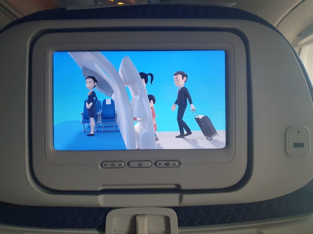After stopping and starting multiple times, and receiving a few lukewarm welcomes from the cabin crew, I eventually made it to Seat 31K near the rear of the aircraft. As one would expect from a widebody jet that is deployed on (minimal) long haul services, each seat came complete with an inflight entertainment screen. Whilst this was not the most modern or high definition screen that I have come across, this was still a welcome addition given the length of the flight to Berlin. Upon boarding, almost all of these across the aircraft were switched off, however, these could be switched on and upon doing so these displayed a welcome screen. For power, each seat came complete with a USB-A port, although I failed to spot any plug sockets in the area around my seat.