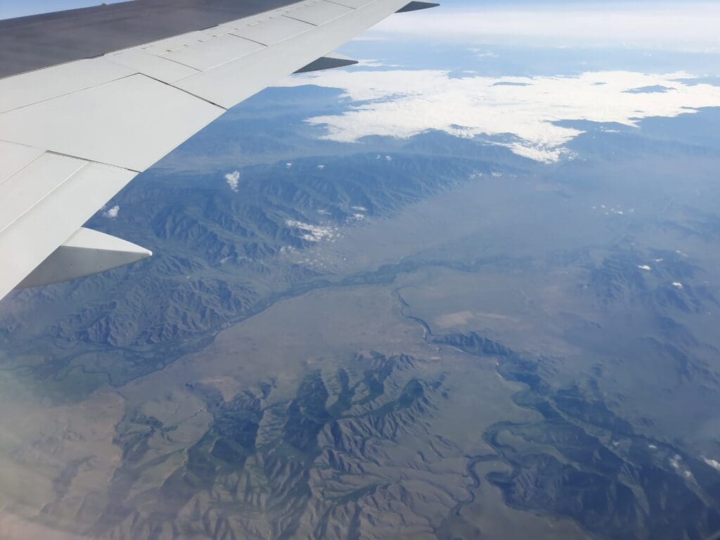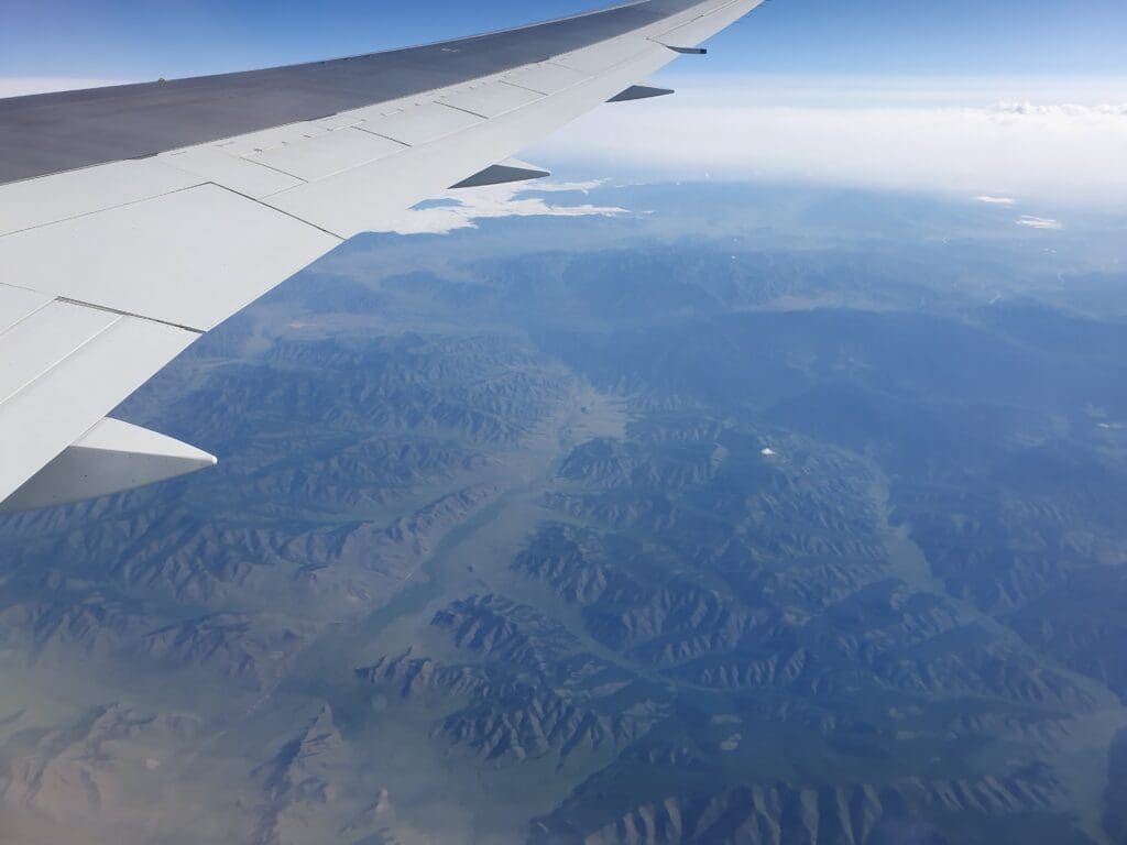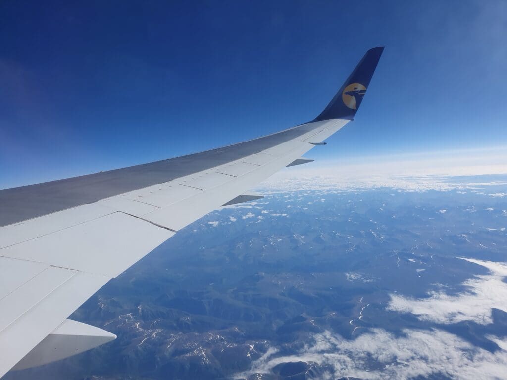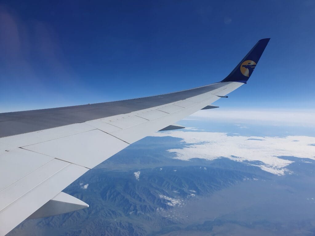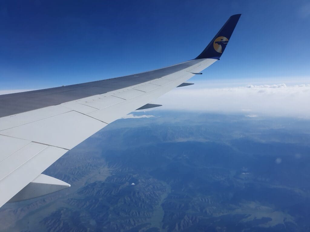 As we left Ulaanbaatar, the residential areas soon transformed into grassy hills, however, views were not to last for too long and our aircraft soon entered the clouds. Following a quick and smooth journey through that morning’s clag, soon, the Land of the Blue Sky’s bright blue skies appeared above. Seeing as Mongolia is renowned for its beautiful landscapes, I was a little disappointed that nothing but thick clouds could be seen during the initial stages of the flight as we headed up to our cruising altitude of 36,000 feet.