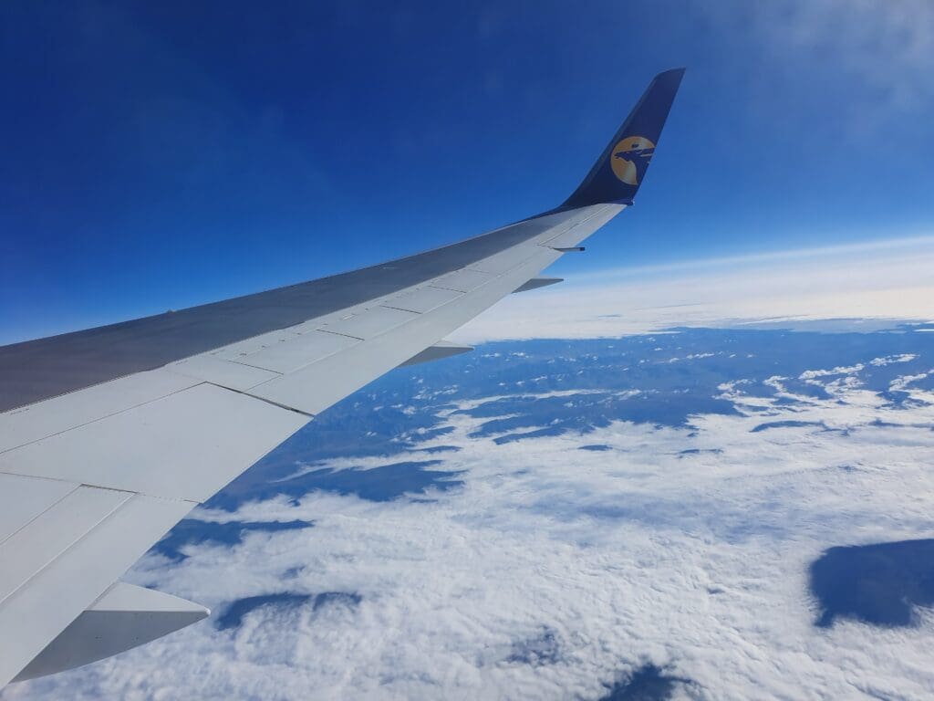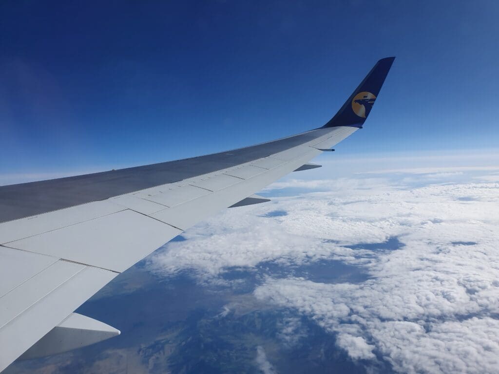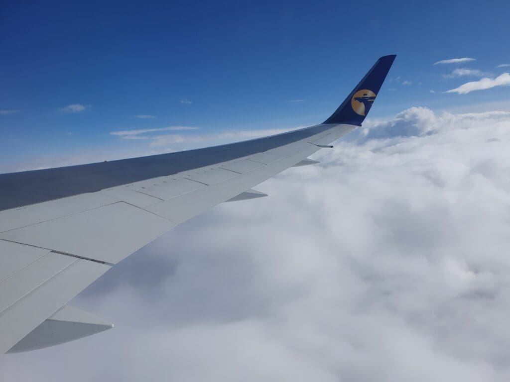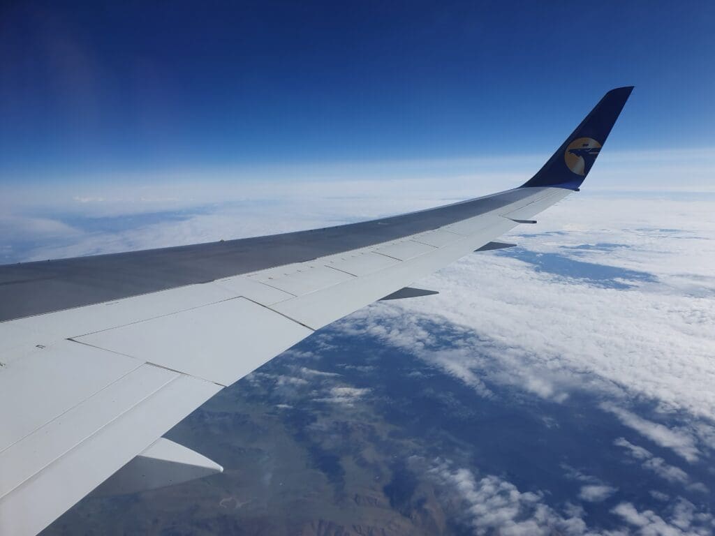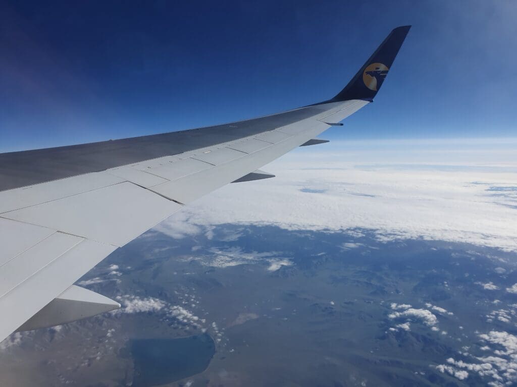 As we left Ulaanbaatar, the residential areas soon transformed into grassy hills, however, views were not to last for too long and our aircraft soon entered the clouds. Following a quick and smooth journey through that morning’s clag, soon, the Land of the Blue Sky’s bright blue skies appeared above. Seeing as Mongolia is renowned for its beautiful landscapes, I was a little disappointed that nothing but thick clouds could be seen during the initial stages of the flight as we headed up to our cruising altitude of 36,000 feet.
