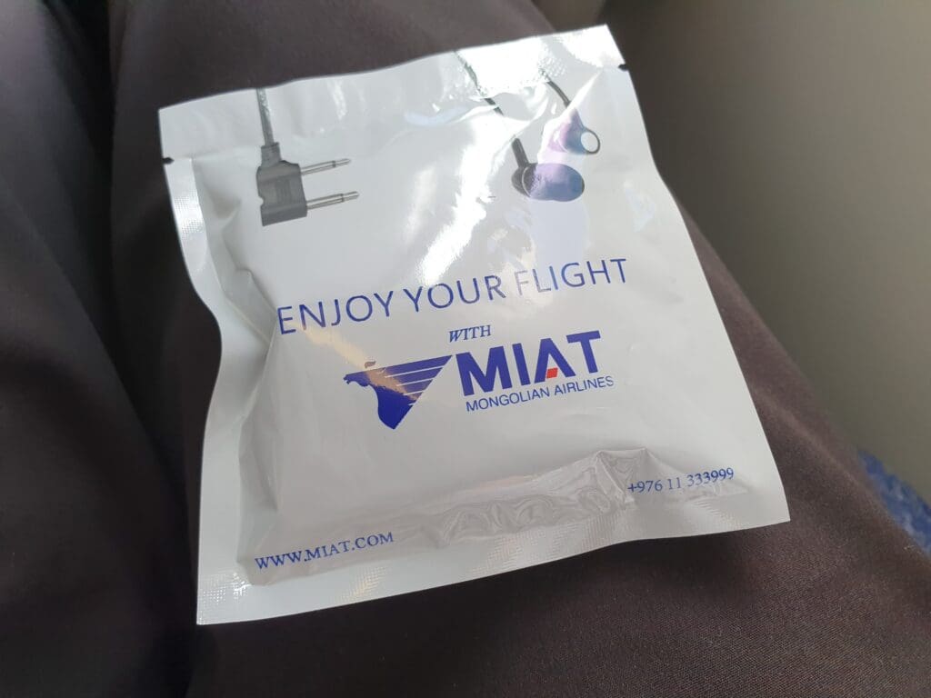 Thankfully, as we neared the final stages of our climb, the clouds dissipated a little and revealed the mountainous landscape of Khövsgöl Province in northern Mongolia. As we neared the top of the climb, those inflight entertainment screens that were on were rebooted, before all inflight entertainment screens were turned on. Whilst this would have been a little annoying had I been mid-film, seeing as the views of the Mongolian mountains were providing my sole form of entertainment, I was not particularly bothered by this. Once the seatbelt signs were extinguished, the crew passed through the cabin handing out Mongolian and Russian newspapers alongside MIAT branded packets containing low quality headphones.