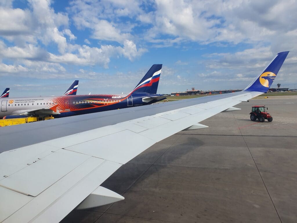 Despite claims on the departure boards inside the terminal that the flight to Berlin would depart at 1025, by 1005 all passengers appeared to have made their way onto the aircraft and a few minutes later, glancing forward, I witnessed the L1 door being shut in preparation for our departure. Given the service’s 22-hour delay and the wide range of options that exist for those needing to travel from Moscow to Berlin, I had assumed that many of those joining the flight for its final sector would have been rebooked onto other services. However, this appeared not to have been the case with a nearly full Business cabin and an Economy that appeared to be approximately 70% full. As I had expected, the same army of cabin crew members could be seen working the flight on this sector. Once the door was closed, the captain welcomed everyone onboard once again in Mongolian and English and gave the usual details regarding the flight and the weather in Berlin. As it turned out, the flying time for this sector would be 2H15, which, assuming a prompt departure alongside a quick passage through immigration and a short wait at baggage collection would enable me to catch my onward flight to Zurich. However, turning outside my attention outside, frustratingly, the neighbouring Manchester United liveried Aeroflot Airbus A321 could be seen being readied for pushback, with this aircraft delaying our departure by around ten minutes or so. Meanwhile, back inside the cabin, once the Captain had made their announcement, the Purser welcomed all passengers once again before the airline’s animated safety video played as the crew passed through the cabin ensuring all was secure in preparation for our departure from the Russian capital.