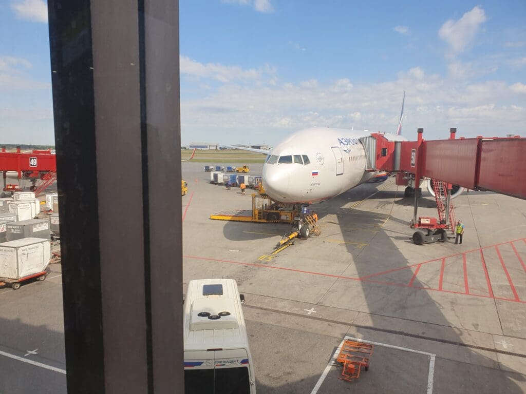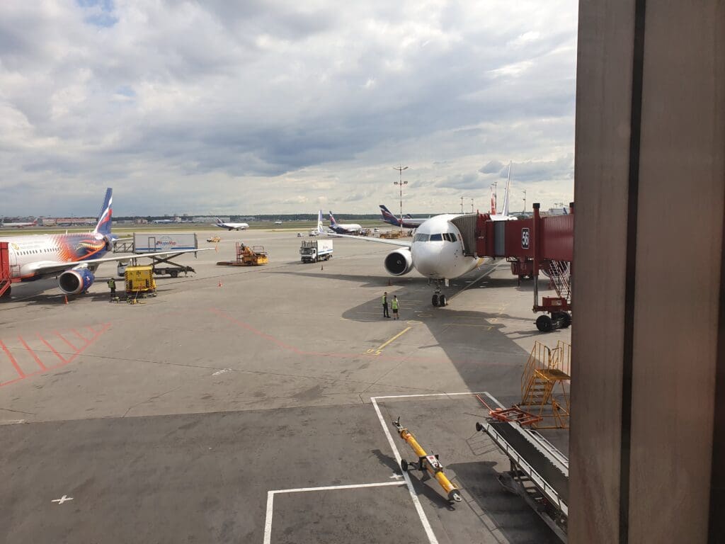 After heading up the jetway, I found myself following signs for the international transit area along with the flock of passengers who were simply simply connecting in Moscow. That morning I would estimate at least three quarters of those non-Russian passengers who had arrived from Ulaanbaatar to be connecting onwards. Around half of whom were heading on to Berlin with MIAT and the other half bound to a host of destinations, most of which were dotted around Europe however I did overhear some Tel Aviv-bound Israeli passengers as well as a group of Americans on a mammoth journey to Washington. Having arrived at Stand 56, or Gate 54 as it is known inside the terminal, the relatively long walk to the security area involved a journey down the flight line where a selection of Aeroflot Airbus A330s and Boeing 777-300ERs could be seen waiting to take passengers to destinations across the world.