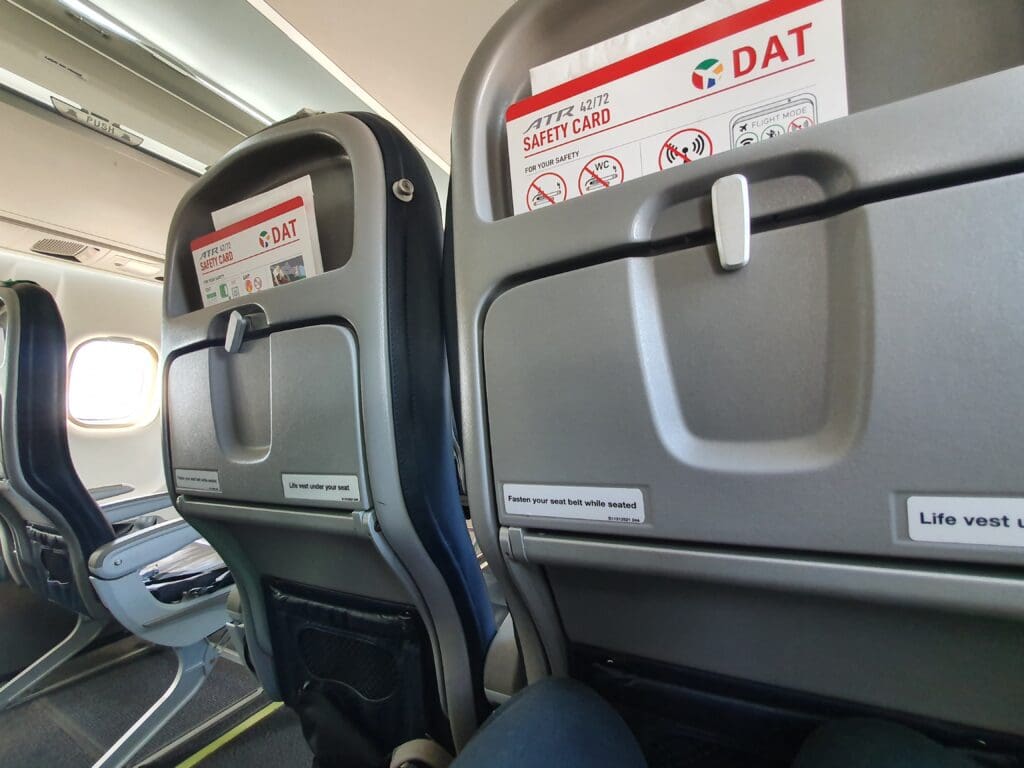 Upon taking my seat, I found this to be pleasantly soft, however, this did not seem to provide a fantastic amount of legroom. Nevertheless, given the flight’s short duration, this did not prove to be a massive issue. Meanwhile, other than a few coffee stains and scratches, the area around my seat appeared to be clean and in relatively good condition. Onboard, each seat features both a literature compartment which contained a laminated safety card and a large sickbag, as well as an empty seatback pocket. Finally, a coat hook could be found on the side of each seat.