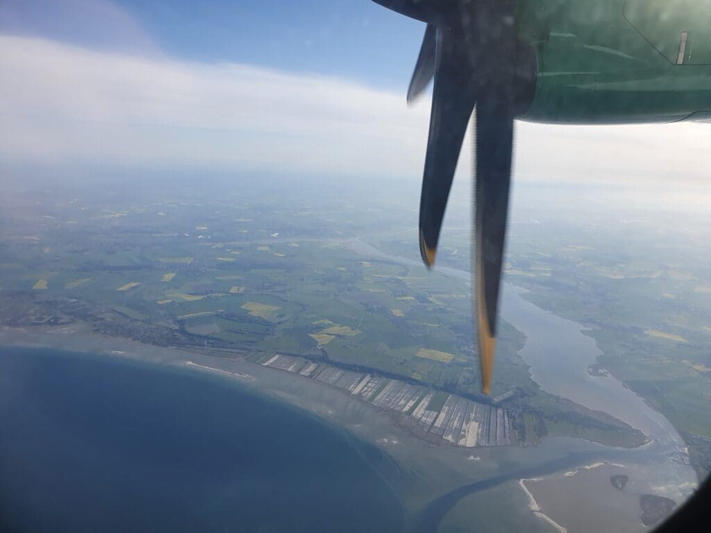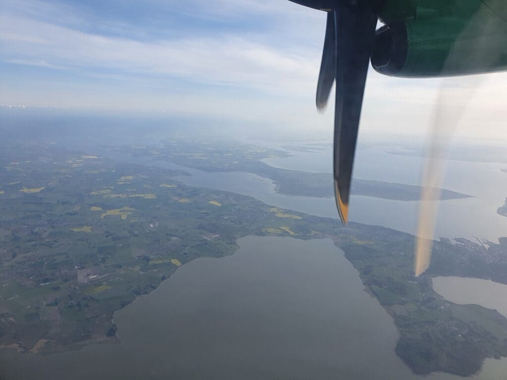 Turning to examine our route to Copenhagen, after leaving Aalborg behind the aircraft climbed up over the flat and picturesque countryside of North Jutland before soon levelling off at its cruising altitude of just 11,000 feet. Thanks to our low cruising altitude and the good weather that evening, as we plodded towards the capital I was offered a good selection of views of Denmark. After passing over the Ajstrup Bugt, the aircraft left North Jutland behind and made its way out over the Treå Møllebugt before passing over the northeastern corner of Central Jutland’s Glesborg Peninsula. After this, the aircraft then made its way out over the Kattegat, the stretch of the Baltic that separates Denmark’s Jutland Peninsula from Sweden.