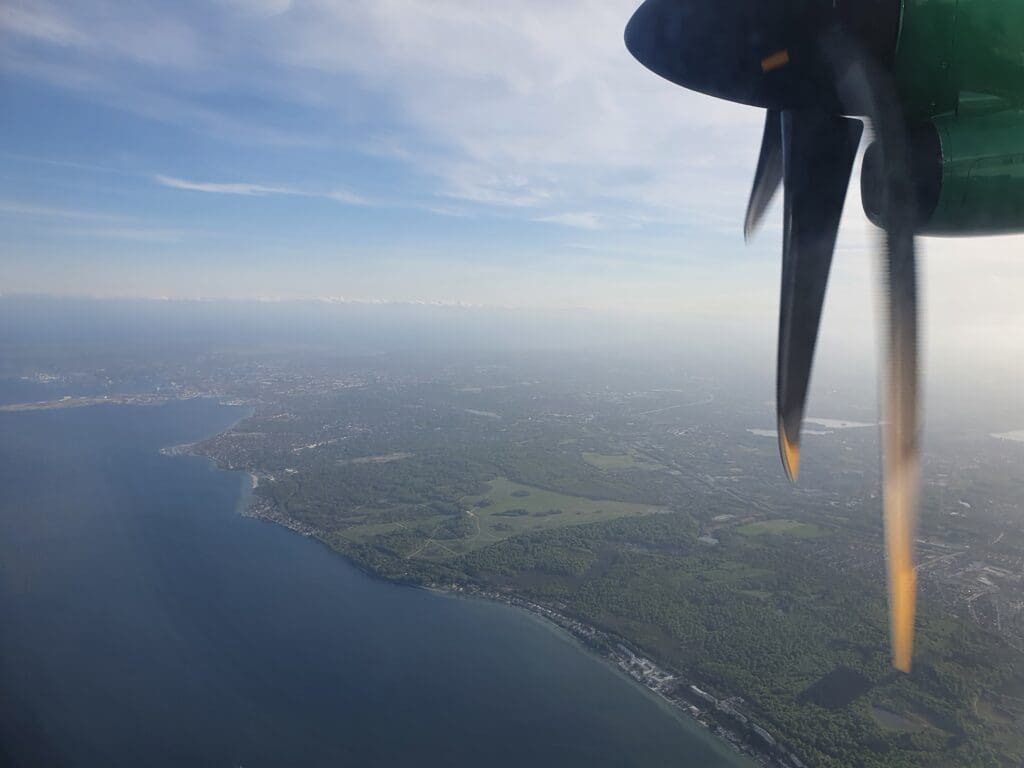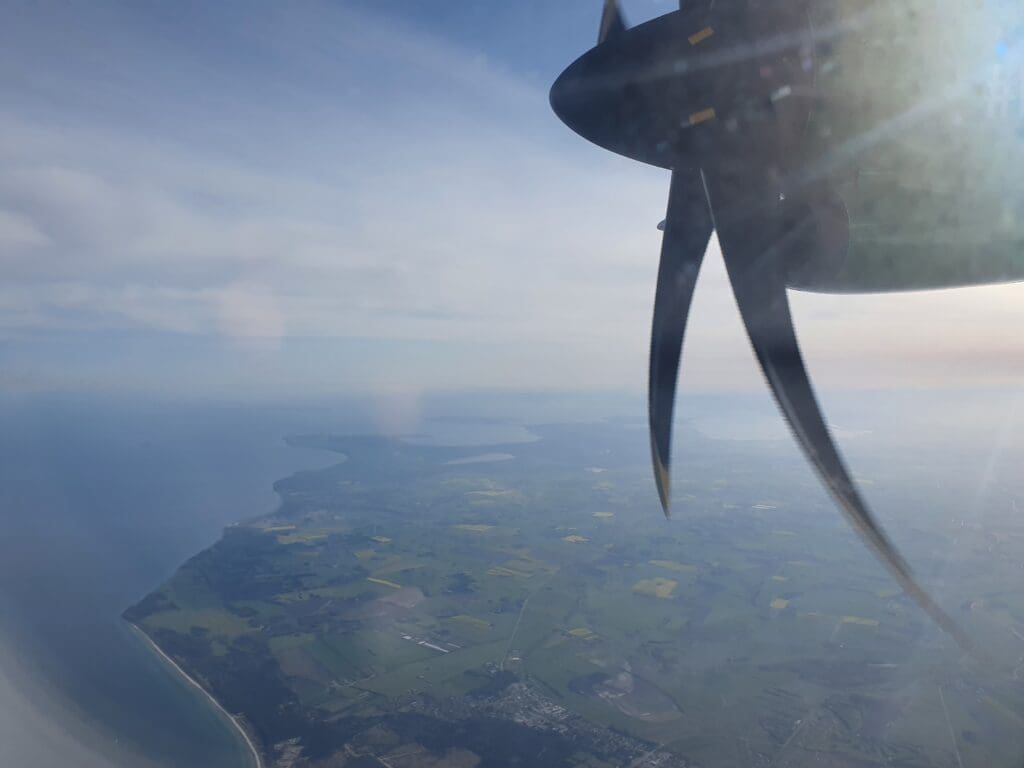 As the ATR made its way over the sandy northwestern coastline of the island of Zealand, at 1822 the aircraft could be felt commencing its descent at which point the Captain informed us that we could expect to be on the ground in ten minutes. In the usual manner, as soon as this announcement came to an end, the seatbelt signs were reilluminated at which point one of the two flight attendants announced the usual pre-landing warnings regarding seatbacks, seatbelts, tray tables and window shades. From Zealand’s coastline, the aircraft crossed over the island’s countryside as well as a host of towns that included Tisvilde, Helsinge, Hillerød and Hørsholm before reaching the island’s eastern coastline and heading out over the Øresund.