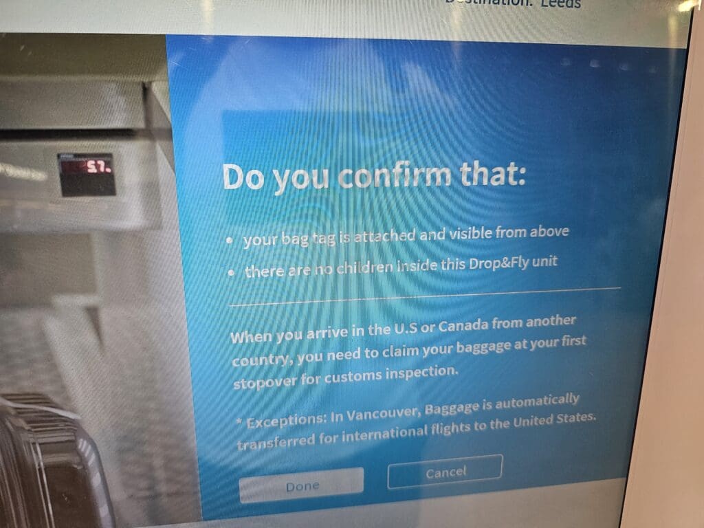 As I wandered around, it didn’t take long to spot KLM’s check-in area, with this featuring a fairly reasonable queue of passengers. This area consisted of a row of automated bag drop-off machines, whilst plenty of self-check-in machines could also be found. Whilst I assume that KLM did have a few manned desks somewhere, I failed to spot these, or they were perhaps not open at that time given the fact that I still had over three hours to go until my flight was scheduled to depart. Hoping that I wouldn’t have to queue up if I printed off my boarding passes and baggage tag using the self-check-in machines, unfortunately, whilst these machines claimed that the latter could be printed, this turned out not to be the case. Thus, with my boarding passes in hand, I was left with no option other than to join the ever-growing queue of passengers. Following fifteen minutes of slowly shuffling forward, I was greeted by one of the friendly Air France-KLM agents manning the check-in area. Upon scanning my passport, for whatever reason, they placed my check-in machine-printed boarding passes in the bin and instead gave me a single boarding pass for both my flight to Amsterdam and my onward hop to Leeds Bradford before pointing me in the direction of a kiosk. Unfortunately, the first machine that I used didn’t seem to like the look of my passport, however, shifting to the neighbouring machine, this worked without issue. Within a few seconds, a baggage tag was printed out and after carefully following the instructions on the screen, I affixed this to my suitcase before sending this off deep into the depths of Terminal 2.