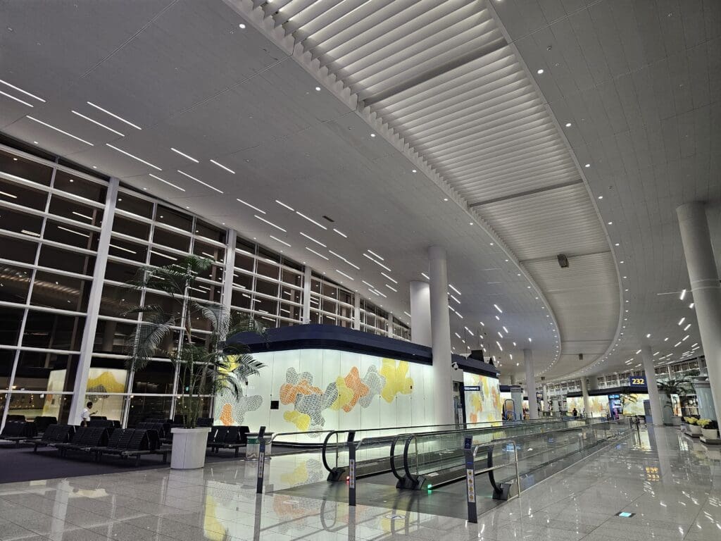 Turning to the terminal’s design, this was bright and modern inside, and one of the more architecturally impressive and stylish terminals that I have had the pleasure of passing through. Adding a welcoming touch of green, plenty of plants and even tall trees (which I believe were real) could be seen throughout the terminal. Meanwhile, this also featured a host of exhibition spaces where passengers can browse various installations by local artists before jetting off. Importantly, I found the terminal to be clean and tidy throughout and was left with relatively little to complain about. However, I should note that the terminal did seem to be surprisingly lacking in plug sockets and other charging points. Meanwhile, with various upgrade projects underway at that time, plenty of construction hoarding could be seen, accompanied by the sound of banging and sawing.