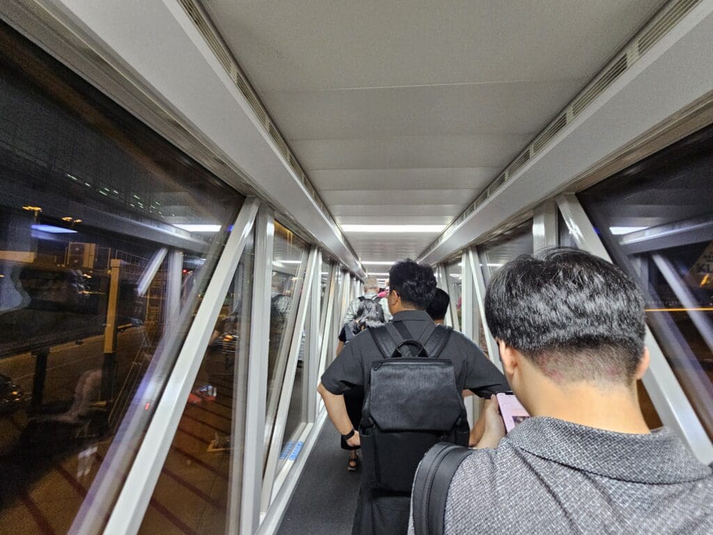 Ten minutes after boarding had been scheduled to commence, an announcement was made inviting those in Zone 1 to board. Given the number of passengers, it took quite some time for the gate staff to work their way through the boarding order, and to their credit, the staff seemed to have no issues in turning away those who attempted to board ahead of their zone. On a side note, interestingly it appeared that KLM boarded passengers in Economy from front-to-back rather than the usual back-to-front order, and the only airline that I had previously seen this on was Virgin Atlantic. After lingering around for eleven minutes, those in Zone 5 were invited to board and I joined the orderly queue of passengers lining up to the gate podium. As I shuffled forward, one of the gate agents checked my boarding pass and passport, this being undertaken once again upon reaching the podium by a somewhat cold member of the ground staff. Without a word, I headed down the escalator that led to the gate’s jetbridges. Whilst two jetbridges were present, boarding was only undertaken with one of these that night, with this connected to the Boeing’s L2 door.