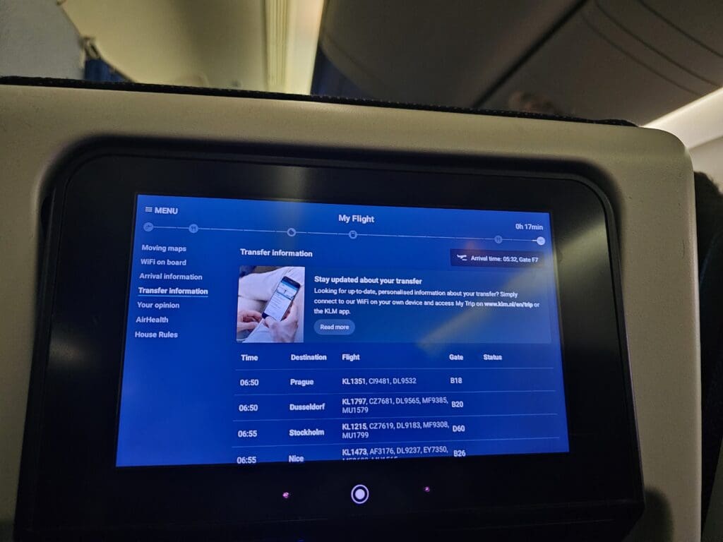 As many passengers now expect, the system featured a high-quality interactive moving map that allowed passengers to track the progress of the flight in a wide variety of ways. This also featured plenty of information about KLM and its destinations, guides on how to connect to the onboard wifi network, information about Schiphol Airport, departure boards for connecting flights, a survey, ‘House Rules’ and an AirHealth section with a variety of tips for keeping fit and well during long haul flights. Finally, seventeen games were offered for those looking for a more interactive means to pass the time. All-in-all, I found KLM’s inflight entertainment system to be of very high quality and was most certainly one of the better systems that I have had the pleasure of sampling as of late.