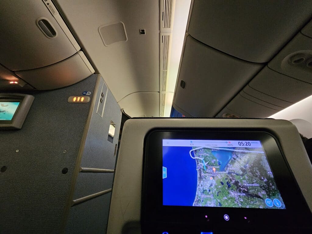 Perhaps serving to rile traditionalists and classical music lovers, throughout boarding a megamix of upbeat and calming pop and folk music rang out through the cabin – something that I took no issue with. Meanwhile, upon boarding, a welcome message superimposed on a montage of scenic photos from across the Netherlands was displayed on each inflight entertainment screen, although these could be used from boarding to disembarkation except for during announcements and the safety video.