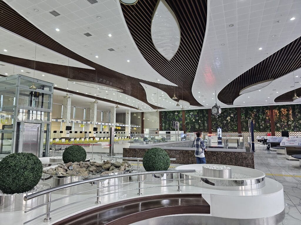 Like many stations across the world, plenty of eateries and shops are offered in and around the station, including several street vendors selling bread, fruit, nuts and sweets, for those looking to take something onboard with them. Having faith in ADY’s catering, I made my way into the station without stopping by any vendors, and once inside, I found this to be well-polished, modern and very clean. However, at that time, this was eerily empty, and I spotted nothing more than about twenty tough-looking security guards and police officers in quasi-military attire and a Japanese family, who, I assumed, were like me, heading off into the mountains. Unfortunately, official advice cautions against taking photographs of strategic sites within Azerbaijan, including stations, and given the presence of the guards, I opted against taking too many photos and instead followed signs for departures.