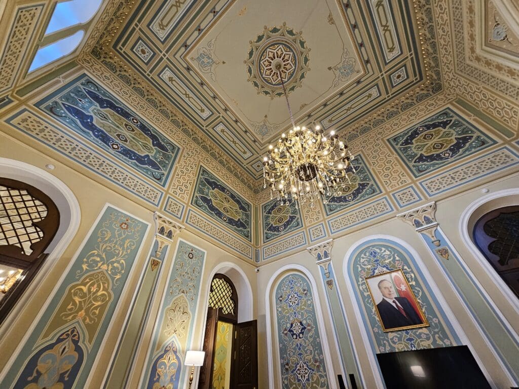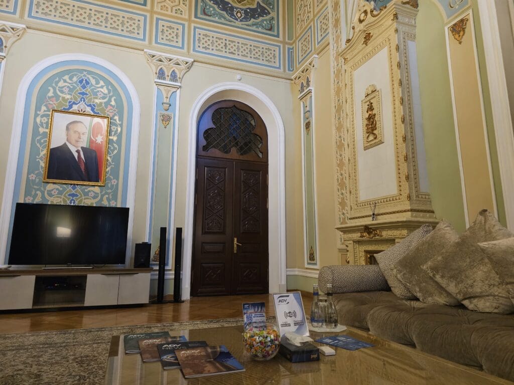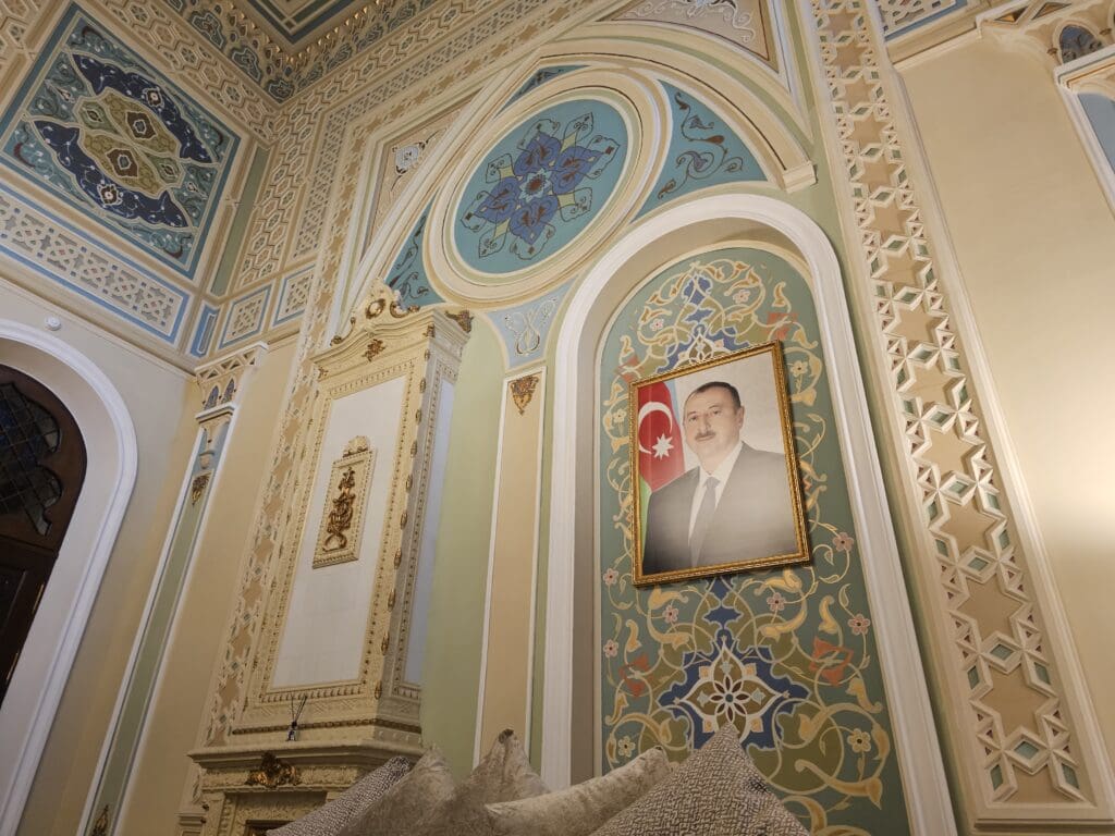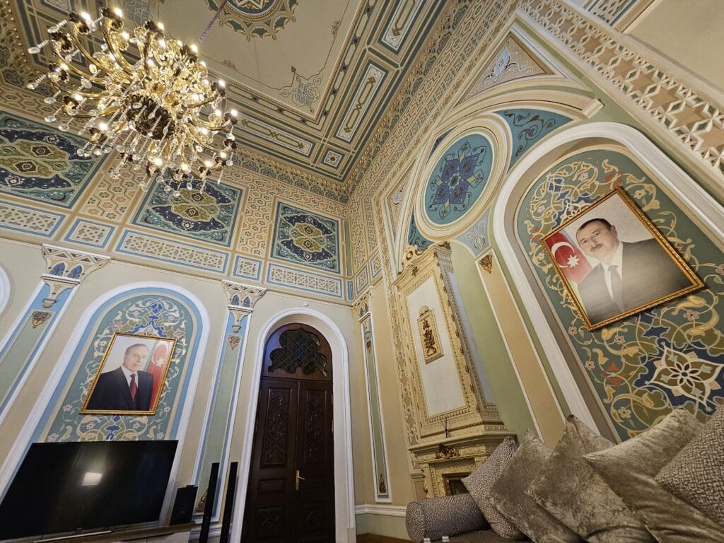 Casting my eyes around the room, this was incredibly ornately decorated, far more so than any other station or airport lounge that I have ever visited. This was complete with intricate traditional patterns, whilst a chandelier hung down from the ceiling. As can be seen at public buildings across Azerbaijan, large portraits of the current and former presidents, Ilham Aliyev and Heydar Aliyev, could be seen hanging on the walls.