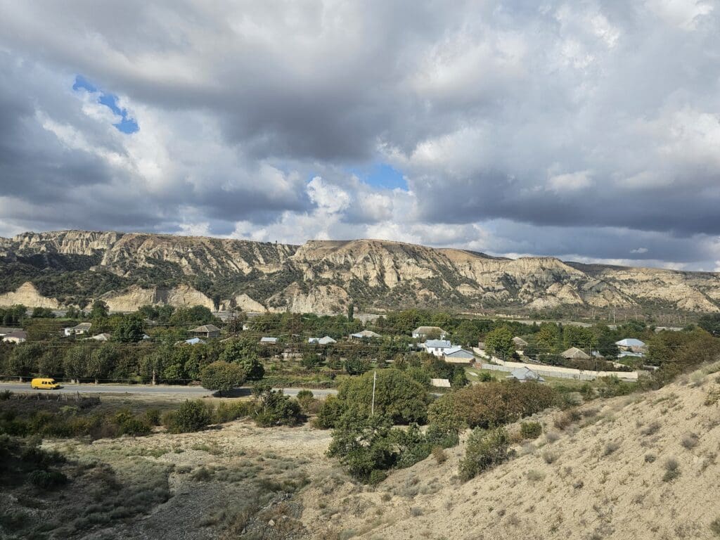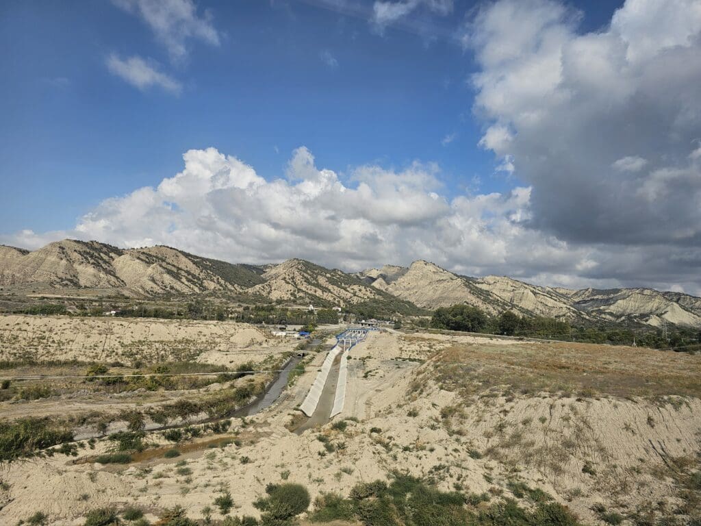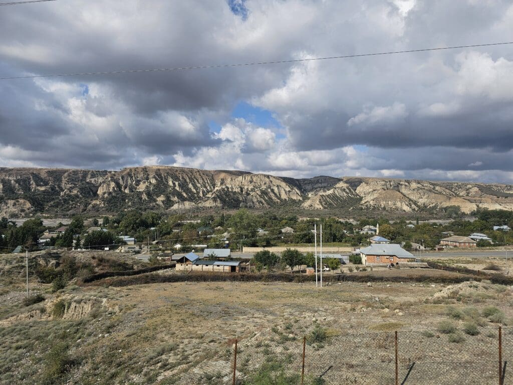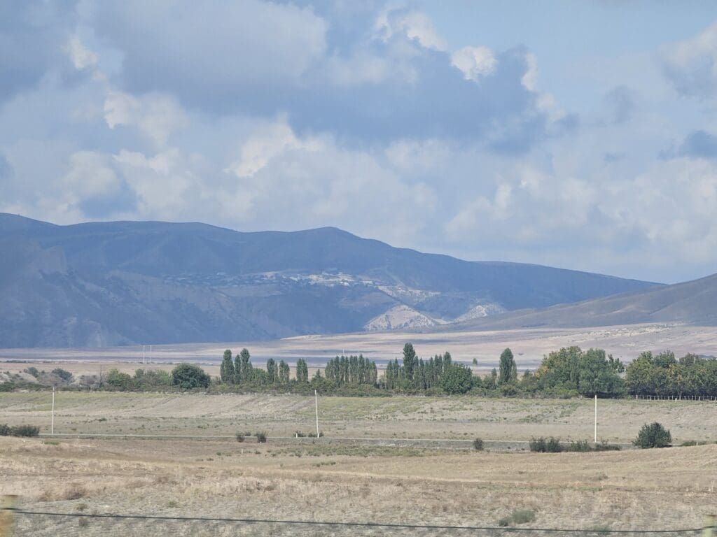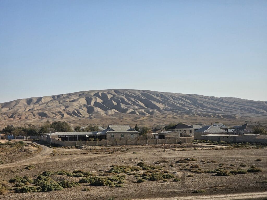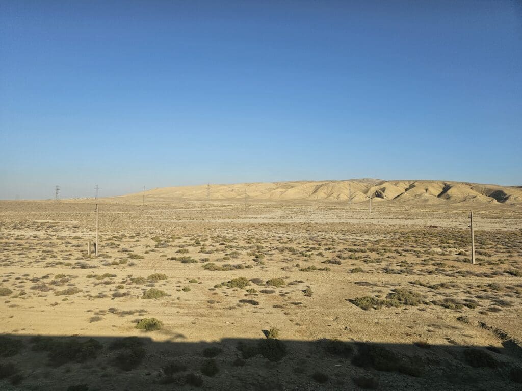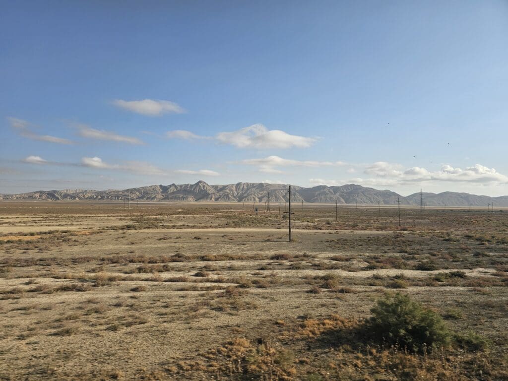 Once back in my seat, I passed the time by taking a short nap. By the time I woke up, the landscape outside had turned a little greener, with plenty of farms visible as we began to head north toward the mountains. Eventually, the train could be felt decelerating as it neared its penultimate station stop, Agdash. Home to around 25,000 residents, this small city is the capital of Agdash District and is known for its agriculture. As we rattled into the station, our train seemed to be greeted by crowds of families, most of whom appeared to be waiting to meet friends and relatives from the inbound train, with few passengers boarding.