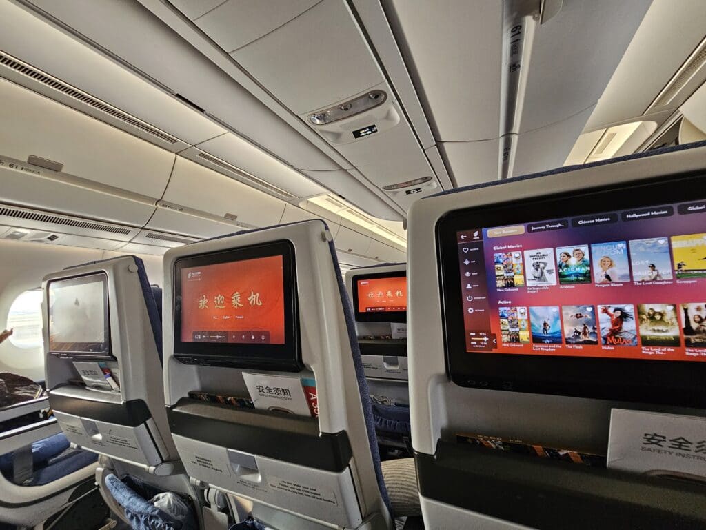 Examining the content, the system was loaded up with a good number of both American and Chinese productions, whilst there were a small number of films and programmes available from other countries too. In addition, plenty of music albums and playlists can also be found, along with ten games. However, I would have likely found playing games to be a frustrating experience, given my issues with the slow screen! Those travelling with children may be a little disappointed to hear that this system lacks a separate kids’ section and unusually, the system also lacked any pages detailing the airline’s history or current operation. Fortunately, I found the FlightPath3D moving map to work well for the duration of my flight, allowing for the easy tracking of our progress as we sped across Asia. Slightly disappointingly, unlike on many other airlines’ Airbus A350s, there were no external cameras viewable on the system. Returning to the positives, I found visual content to commence without any advertisements, something which seems to be increasingly rare nowadays! To summarise, whilst Air China’s inflight entertainment system was not the most comprehensive in the world, I found the level of content provided to be acceptable, and the system was far from the most primitive that I have ever encountered. Nevertheless, this would have been a much better system had the screen been more responsive!