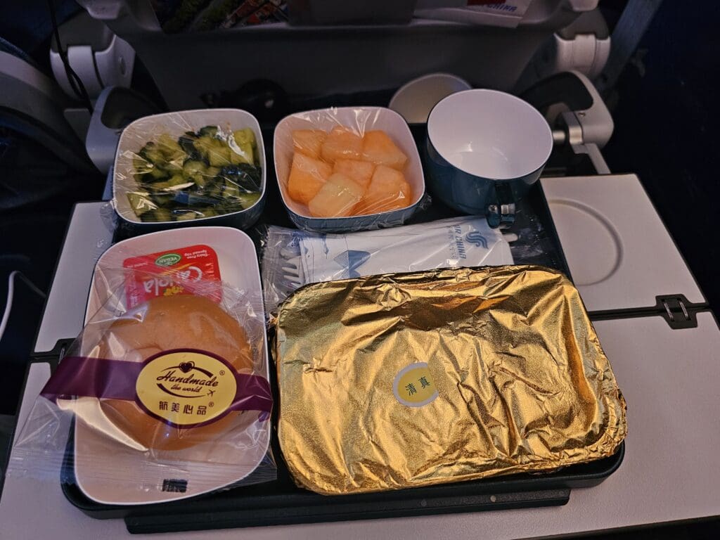 This time around, I ended up being one of the final passengers to be served, although thankfully, both options remained available. Not being too fond of airline breakfasts and seeing as I was flying Air China, I opted to go for the Chinese option. Whilst expecting there to be little interaction again, once the flight attendant reached my row, they looked at me and said, ‘Western?’ in a cool manner. In response, I asked for the porridge, to which they replied, ‘Wow, you can eat porridge. Impressive!’. Not taking this to be too patronising, I then requested a coffee from the other flight attendant who had been tasked with distributing drinks and, still with some time to go until I could bed down for the night, I opted to go for a coffee.