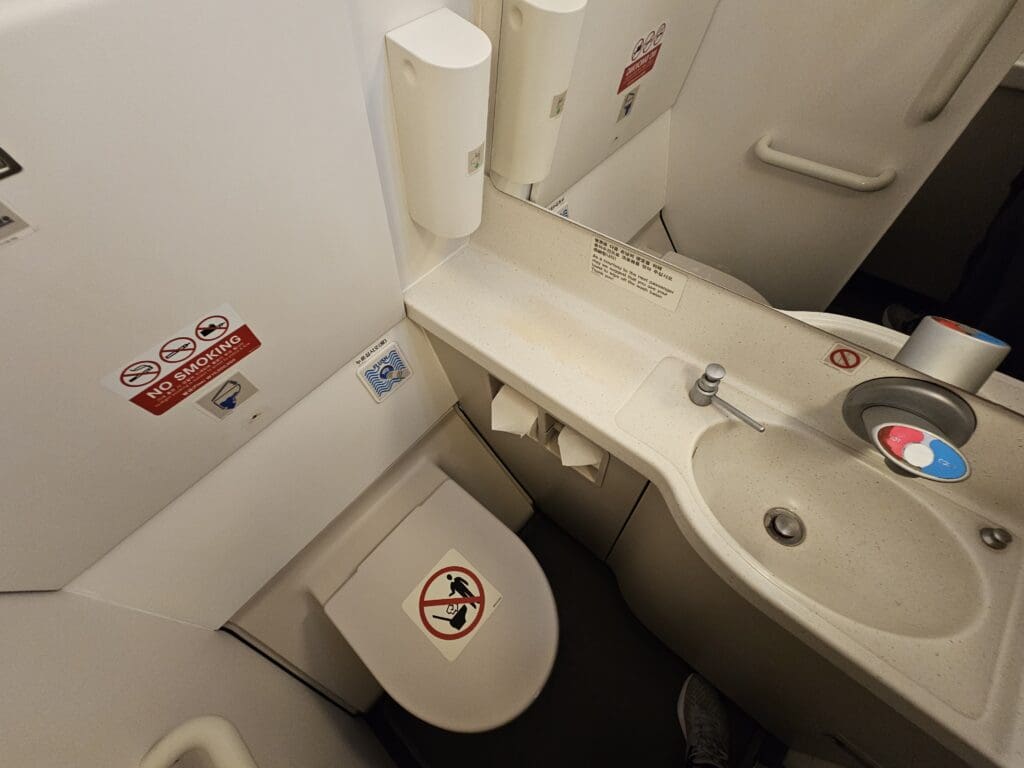 Making my way down the aircraft, I received two more greetings before I made it to Row 23. Upon arriving there, seeing as I would likely end up being trapped for the duration of the flight, I stowed my bag and headed to one of the two lavatories at the rear of the aircraft. Upon opening this up, I found the toilet to be clean, tidy and in a reasonable state, thus leaving me with no complaints and serving its important purpose with little issue.