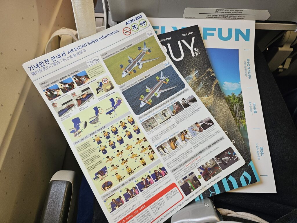Upon returning to my seat, I slid in and settled down for the short journey to Jeju. Unlike all of my previous experiences with Air Busan, I found the seat to be rather uncomfortable. This was both firm and offered almost nothing in the way of legroom, and was thus a far cry from the spacious seats that I remembered from my previous flights with Air Busan. Whilst this was just about tolerable for the hour or so that I would have to spend in this that morning, I definitely wouldn’t have wanted to end up onboard the aircraft for much longer. Turning to the positives, ignoring a slight stain on the seatback, the seat and area around this were clean and largely devoid of any wear and tear. Turning to the seatback pocket, this contained a safety card, a copy of Air Busan’s Fly and Fun magazine, and the latest flight Fly and Shop catalogue.