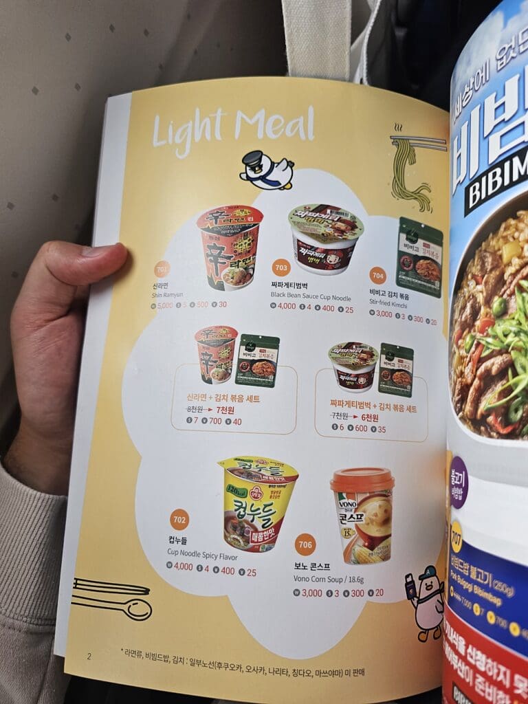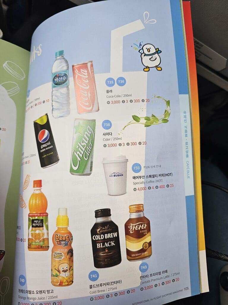 Whilst I had no intention of purchasing anything, I did decide to browse the menu which revealed the usual array of hot and cold, hard and soft beverages on offer, alongside an array of snacks. For those with an appetite, the most substantial of these came in the form of cup ramen. In terms of prices, everything seemed to be priced at a rather standard amount for a Korean low-cost carrier. For example, ramen or a hot drink would have set me back 4,000 won (£2.30), a can of Coca-Cola 3,000 won (£1.70) or a bottle of water 2,000 won (£1.13). It is also worth noting that those on Air Busan’s international services can pre-order one of eleven hot meals, with these priced between 12,000 won (£6.90) and 15,000 won (£8.58).