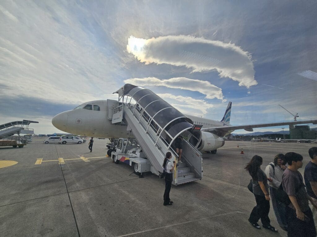 As often seems to be the case with Air Busan services at Jeju, that morning our flight would utilise one of the airport’s remote stands. Seven minutes behind our scheduled arrival time, at 0837, the Airbus slowly and cautiously pulled into Stand 61 where the welcome sight of two buses and an army of Asiana Airport ground crew could be seen waiting and ready to tend to the aircraft and its passengers. Upon coming to a halt, the two engines soon spooled down and the seatbelt signs were extinguished at which point most of those around me jumped up in a rush to commence their Jeju holidays. At this time, a smorgasbord of Air Busan-commissioned songs rang out over the cabin speakers, including their rather catchy theme song!
