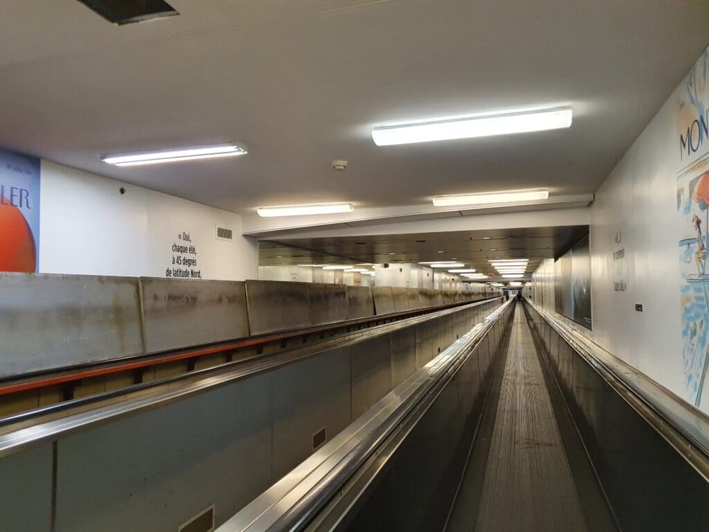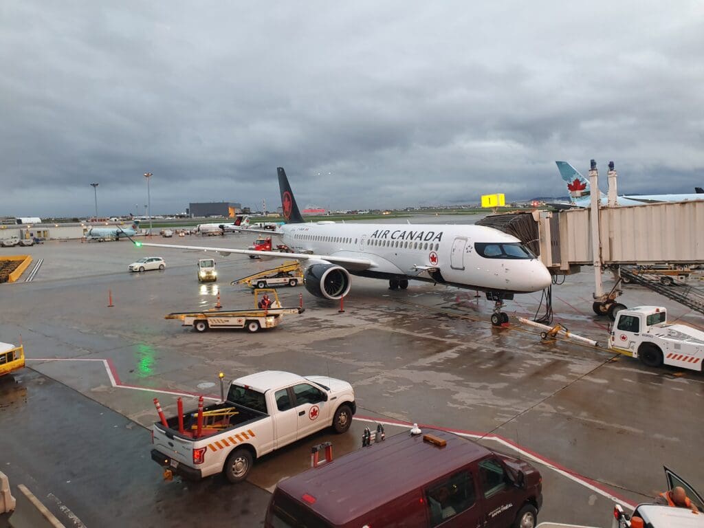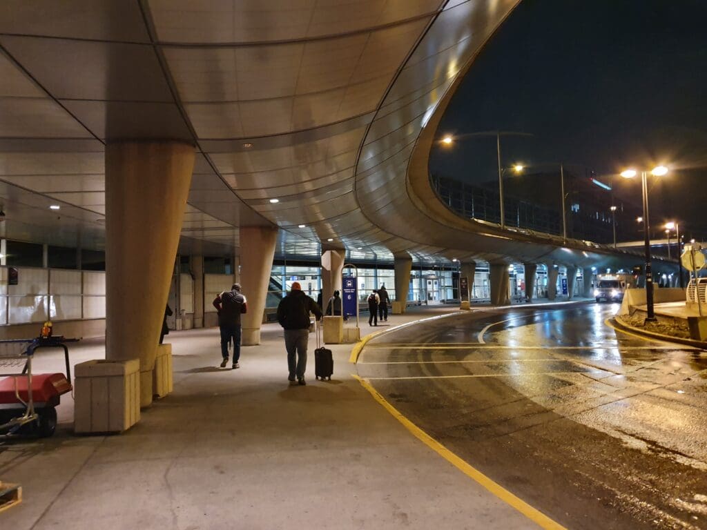 Having analysed the 747 bus’ schedule the evening before departure, I decided to leave La Tour Belvedere at 0440. From there, I made a fifteen-minute dash through Montréal’s cold, drizzly and dark pre-dawn streets to the René-Lévesque bus stop. After a short wait, the bus pulled up right on time just after 0500 and I boarded, scanning my Opus card before taking a seat. Unlike some other airport bus services, whilst running non-stop from the city centre to the airport, the 747 service is operated by a regular city bus with minimal seating and therefore at busy times there is a possibility that passengers may have to stand up. Fortunately, upon boarding, that morning the bus was almost entirely empty, with just three other passengers, although most seats ended up being taken following a brief stop at Lionel-Groulx metro station. Once away from the city centre, the bus sped along the busy Autoroute 20 and around twenty minutes after I had boarded, the modern yet relatively non-descript façade of Montréal-Trudeau Airport’s terminal appeared and the bus soon came to a stop at the ground floor arrivals level of the terminal.