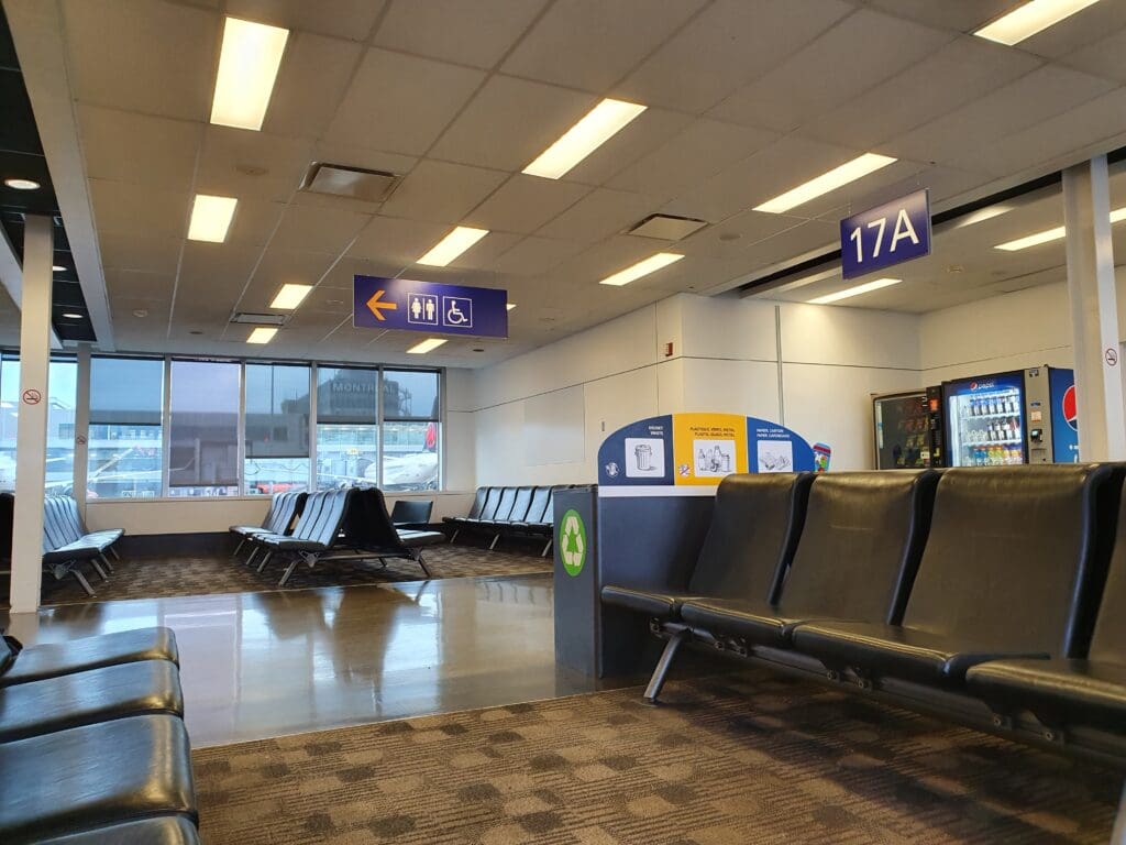 That morning, PAL Airlines’ service to Îles-de-la-Madeleine via Québec City and Gaspé would be departing from Montréal-Trudeau Airport’s satellite pier, with this reached via a long walkway that runs underneath the apron. Following a couple of hours in the main portion of the terminal, I made my way over to the satellite pier which was relatively busy at the time of my arrival with passengers waiting for flights operated by Air Canada Express, Air Inuit, Canadian North and PAL Airlines. As with the main terminal, the satellite pier appeared to be relatively clean although it is notably lacking in facilities, with these limited to a single café-bar and multiple vending machines.