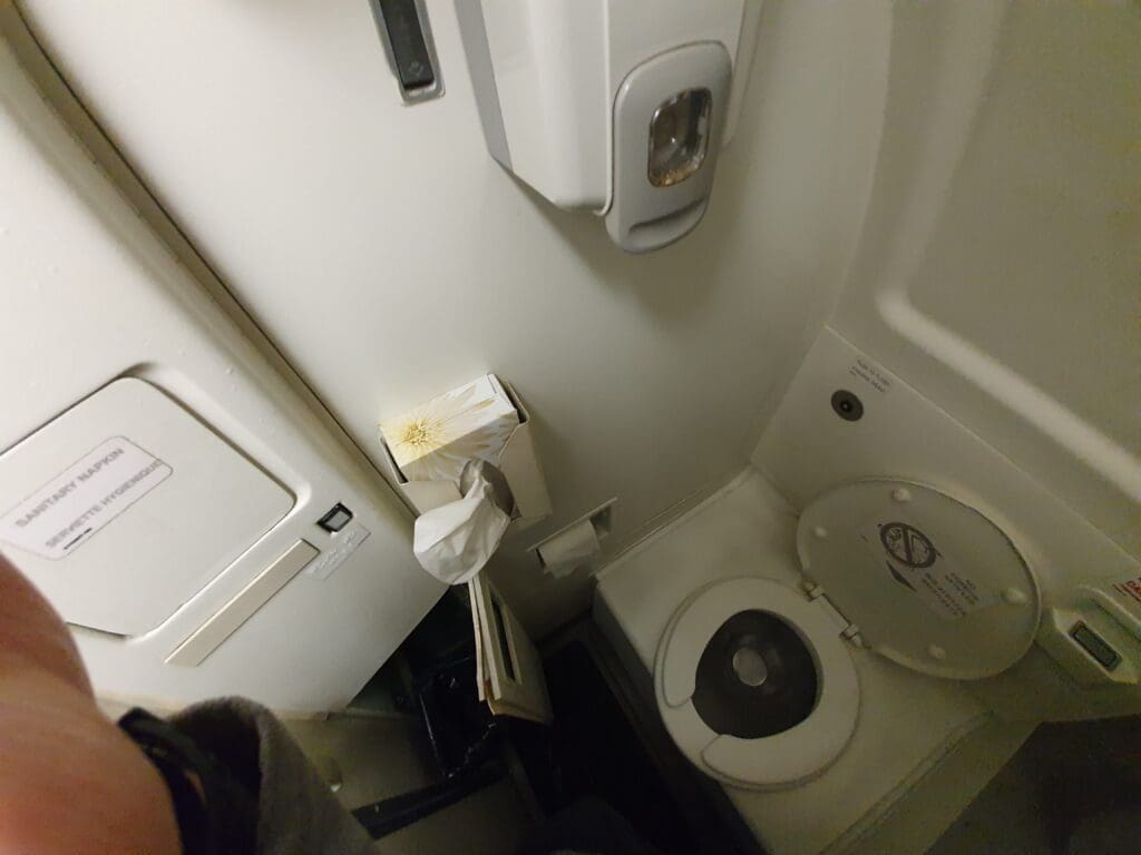 Seeing as I would be unlikely to fly on a Dash 8 300 again in the near future once the seatbelt signs had been switched off, I decided to make a trip to the aircraft’s sole lavatory, located at the very front of the aircraft to the right of the cockpit door. Having previously squeezed into the minuscule Dash 8 Q400 toilet, I was expecting a similar experience and indeed, the toilet onboard the Dash 8 300 was undoubtedly one of the smallest aircraft lavatories I have ever paid a visit to. Inside, this consisted of little other than a toilet, with an antibacterial gel dispenser in place of a sink. Meanwhile, this was significantly more battered and worn than the rest of the cabin, although this appeared to be clean and was stocked with the basics.