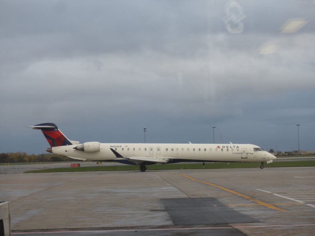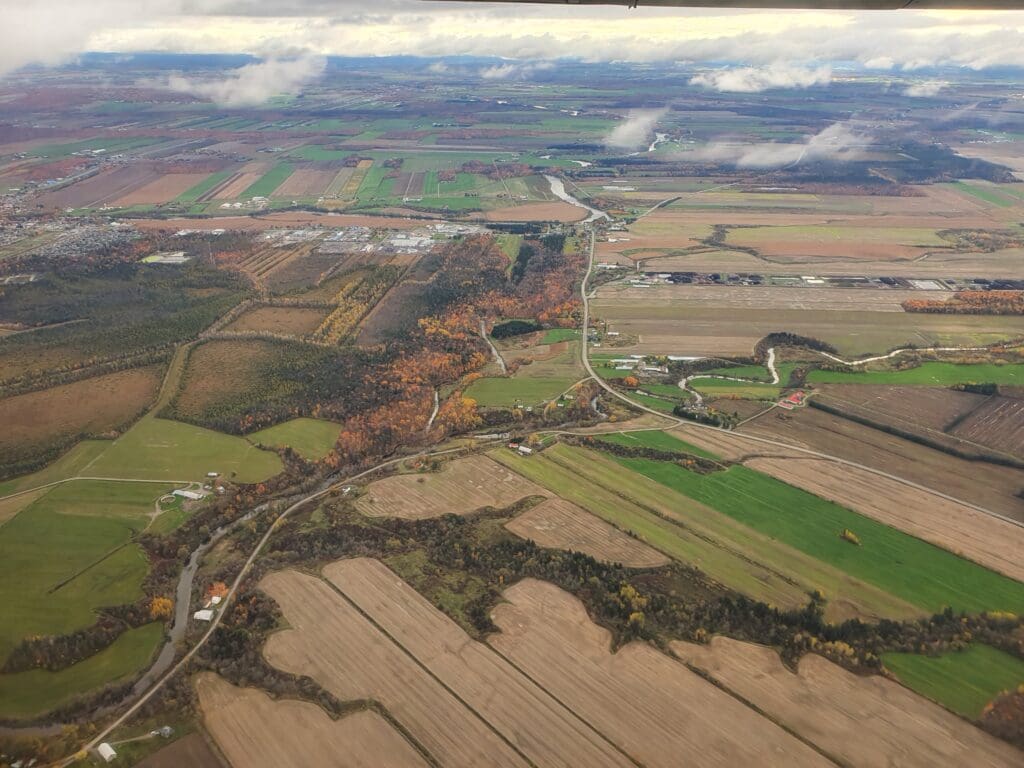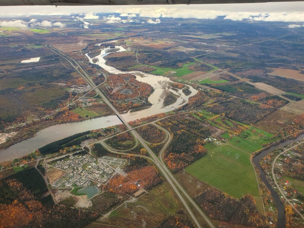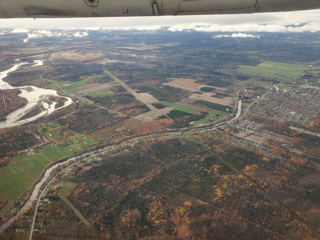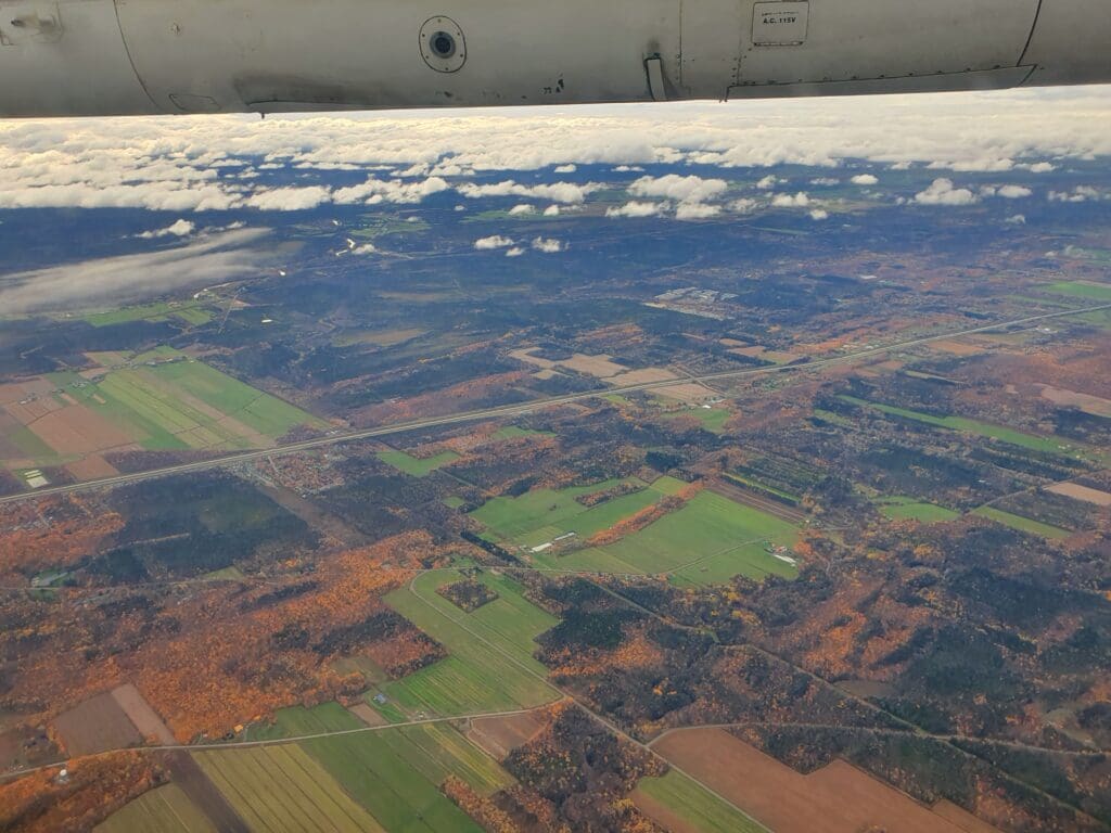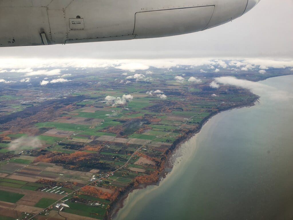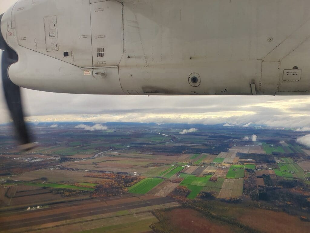 Whilst little could be seen during much of the flight, after departing Montréal the Dash 8 had headed northeast, passing over Québec’s third largest city, Laval, and then heading onto Terrebonne, roughly following the course of the St Lawrence River. Having made my visit to the lavatory as the aircraft crossed down the middle of Lake Saint Pierre, by the time I returned to my seat the aircraft was 15,000 feet above the city of Trois-Rivières. Fifteen minutes after the Dash 8 had reached its initial cruising altitude, the aircraft could be felt commenced its descent at which point the flight attendant passed through the cabin collecting passengers’ rubbish.