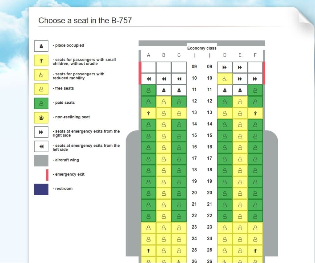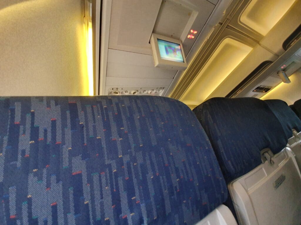 Upon pulling up to the aircraft, three tough-looking guards who would supervise passengers as they boarded the aircraft could be seen waiting next to one of the aircraft’s large Pratt & Whitney PW2037 engines, two in leather jackets and one in an official security guard uniform. Meanwhile, a suited Uzbekistan Airways worker, who appeared to be the flight’s dispatcher, carried bags of rubbish down the aircraft’s steps. Once he had done this, the bus doors opened, and passengers spilt out onto the apron. Given the negative experiences of those who photograph aircraft on the tarmac at Tashkent (usually involving a telling-off and the forced deletion of the offending photos), despite getting fantastic views of the aircraft, I decided against taking any obvious photographs. As we waited, the dispatcher shouted for families to come through first, after which the rest of us were allowed to board. After a short wait on the aircraft steps, admiring our Boeing 757, I stepped into the galley where no fewer than three flight flight attendants who gave me a friendly welcome in Russian before I turned right and entered the cabin which was filled with some funky 1990s-era instrumental music.