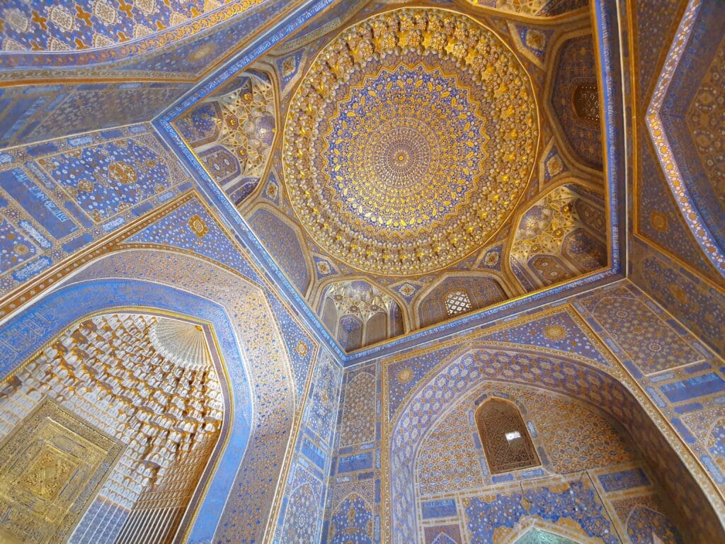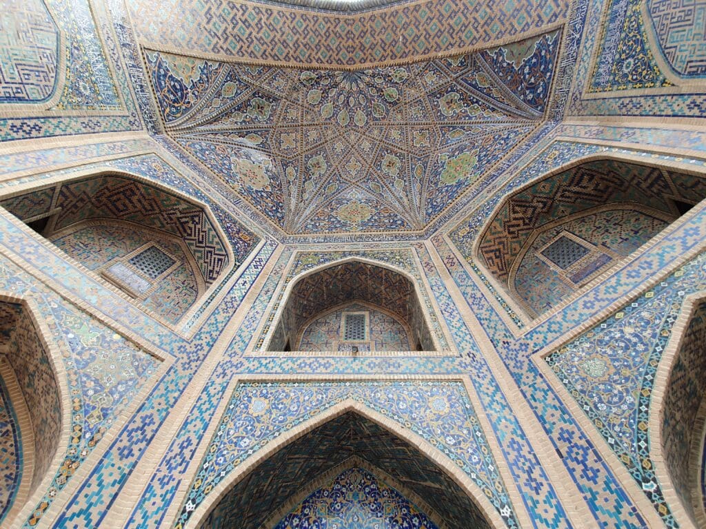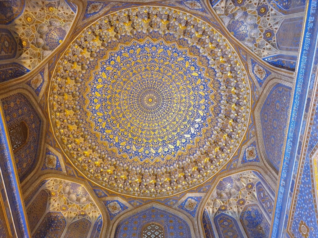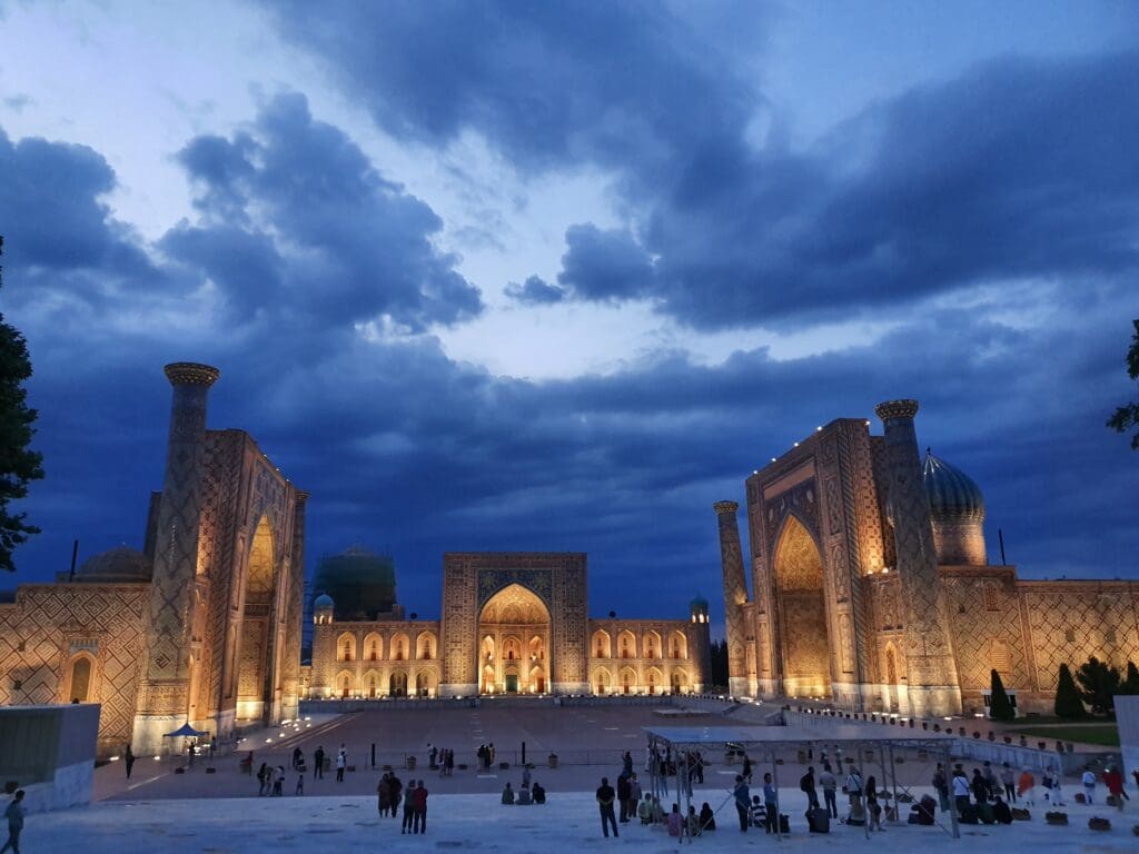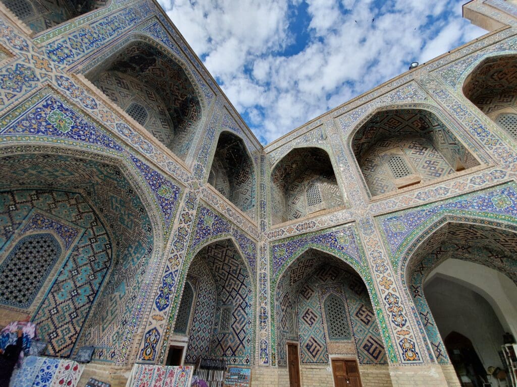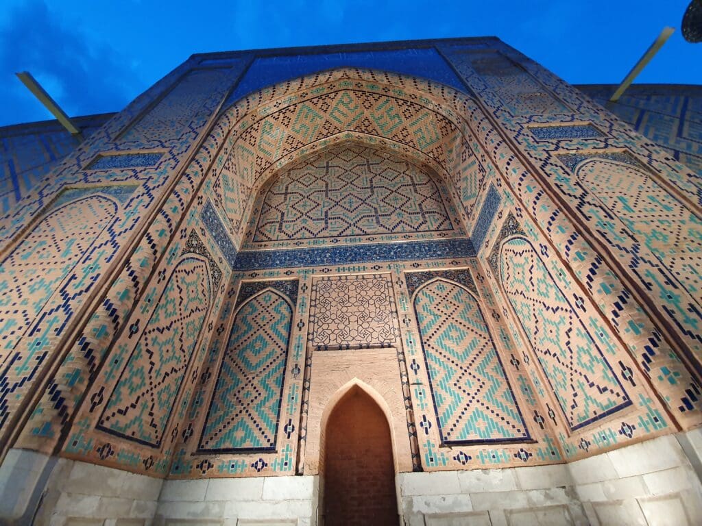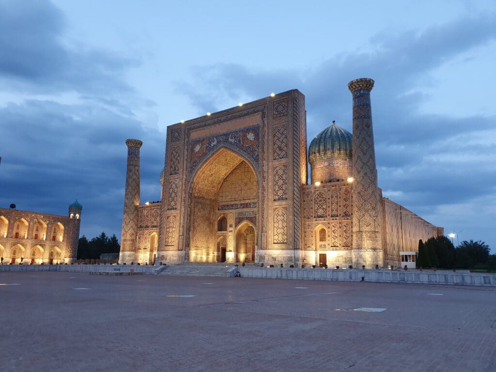 After retrieving my bag, I exited the terminal and walked through the airport’s perfectly manicured grounds to the main exit. Once I had exited the terminal grounds, I was warmly greeted by my pre-arranged taxi driver who would drive me to my hotel. Despite the language barrier, we managed a friendly conversation in basic Spanish – the driver had previously worked in Cuba. After a short 15-minute journey, I arrived at my hotel in the heart of Samarkand’s historic centre, ready to explore the city.