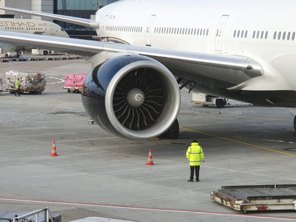 Outside through the terminal’s large windows, my trusty steed could be seen waiting to haul another load of passengers west across the Atlantic. In true Frankfurt-style, its nose appeared to be almost touching distance away from the terminal’s windows. Sporting Air Canada’s ‘new’ (then almost five year old) black and white colours, this particular jet took the form of Boeing 777-333ER C-FIUL, one of Air Canada’s oldest Boeing 777-300ERs. Manufactured in Washington State, this Boeing first took to the skies in June 2007 before being delivered to Air Canada a short time later with the tail number 734. Since then, Air Canada has dispatched the aircraft on services across the world, as well as on domestic flights. After almost a decade in the skies, in Spring 2016 C-FIUL was sent to the HAECO Group’s facility in the North Carolinian city of Greensboro where it received Air Canada’s new Dream Cabin, bringing the aircraft’s interior into line with that of Air Canada’s Dreamliners. Later on, as the pandemic began to take hold across the world and passenger numbers dropped, the aircraft was ferried southwards to Marana Pinal Airpark in Arizona where it remained until being pressed back into service in July 2021.