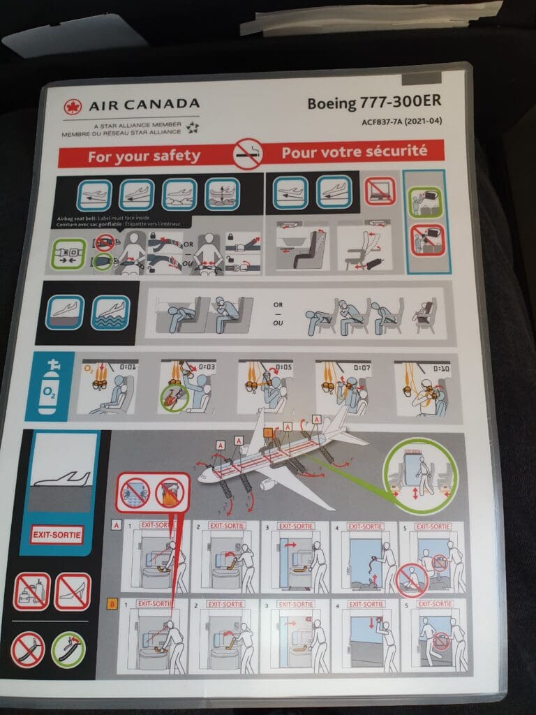 After another wait, at 1048 the aircraft could be felt jolting backwards and a few moments later the Boeing 777’s two gigantic General Electric GE90-115BL2 engines quietly hummed and vibrated into life. Inside the cabin, Air Canada’s Ode to Canada safety video took over all screens, combining the traditional safety video with a promotional video advertising a range of destinations across Canada. During this, crew members can be seen going through the safety instructions across Canada’s thirteen provinces and territories, from the Alberta foothills to the Nunavut Arctic. This was followed by a short advertisement for Canada, and another for Marriott International’s loyalty programme, Bonvoy.
