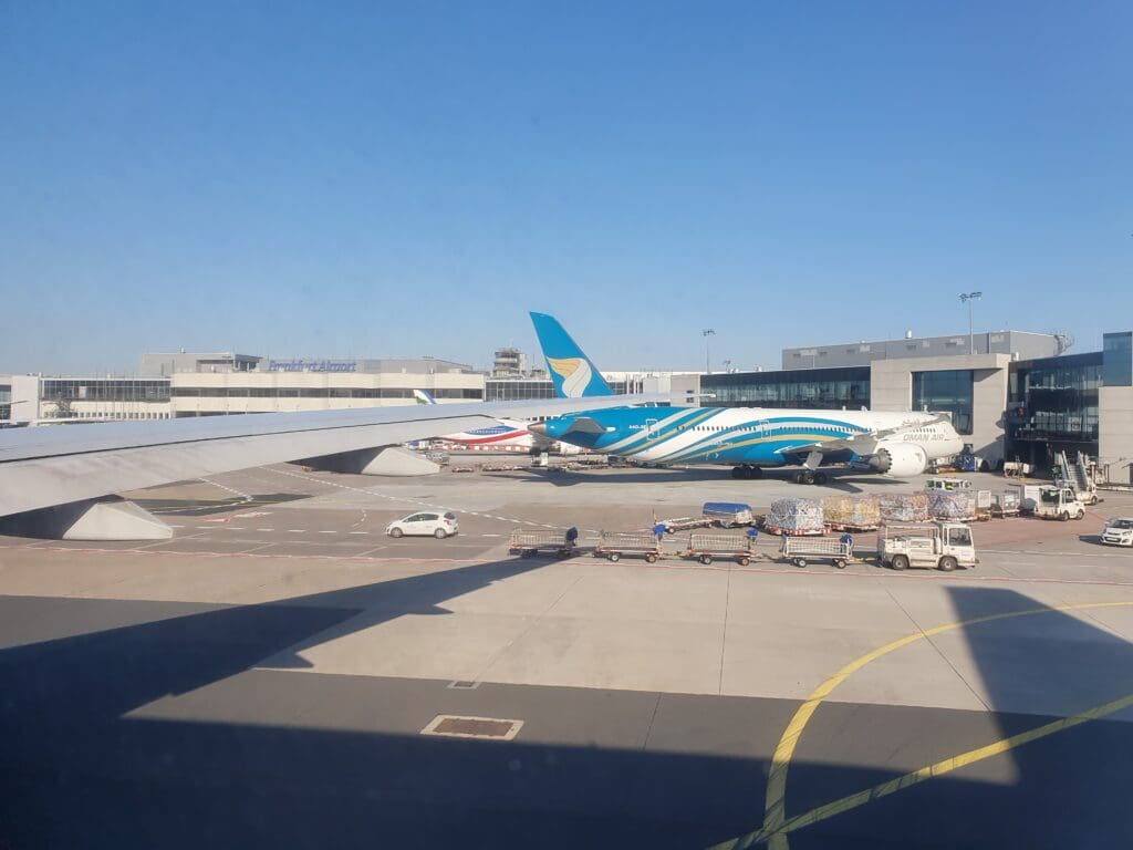 Fearful of long queues to collect my boarding pass, that morning I rushed through Frankfurt Airport. However, having encountered no issues during my transit, once I had completed all the required formalities, I was pleased to find that I still had some time to spare before boarding. According to my freshly printed boarding pass, that morning boarding would commence at 0920, fifty minutes before the service’s scheduled departure time. This left me with some time to have a quick wander around Frankfurt Airport’s ‘B’ pier, which serves flights to non-Schengen destinations. As with the rest of the airport, inside the pier appeared to be reasonably busy with a clear lack of available seating in some areas of this. Meanwhile outside a selection of narrow and widebodies could be seen being readied for their flights to destinations across the world. These included another Air Canada Boeing 777-300ER bound for Toronto, a Middle East Airlines Airbus A321neo, an Oman Air Dreamliner, a Sun Express Boeing 737 as well as several Lufthansa A320 family aircraft.
