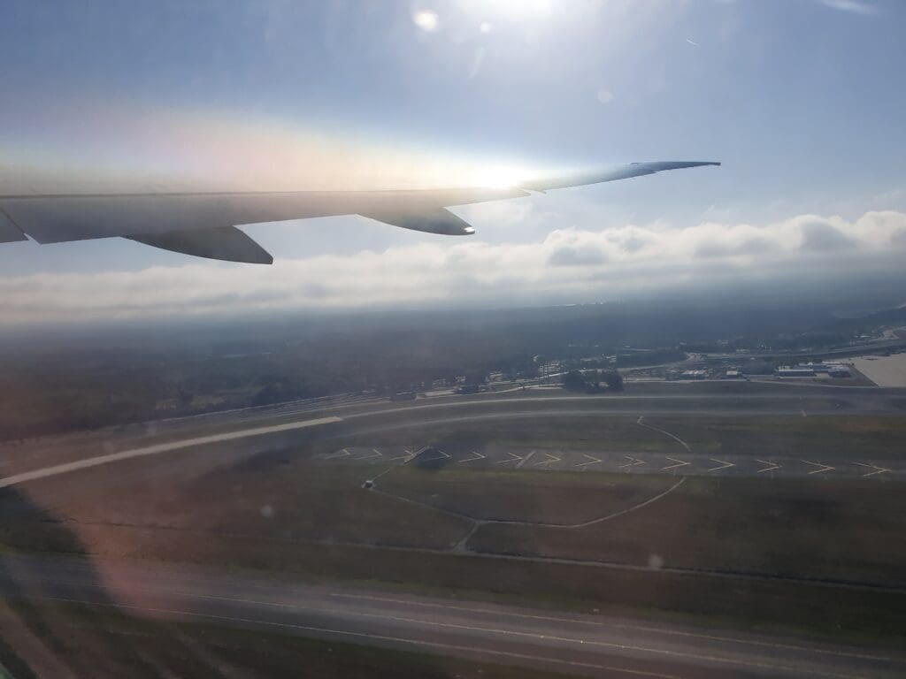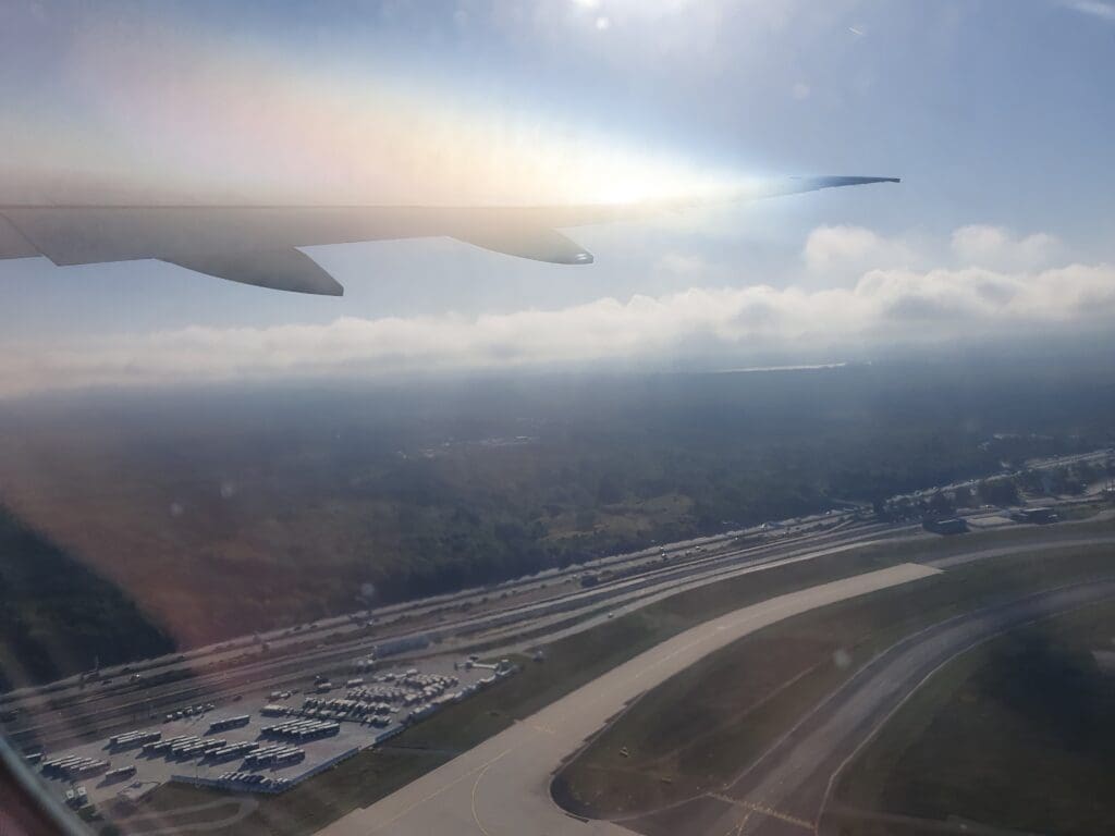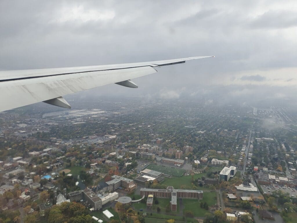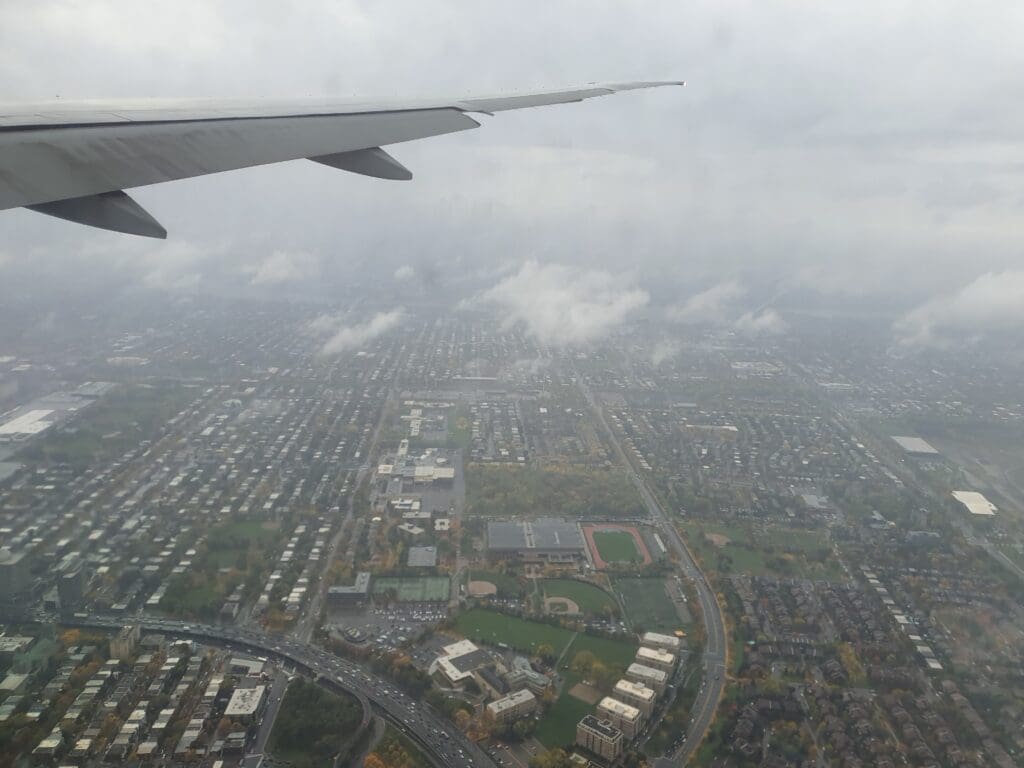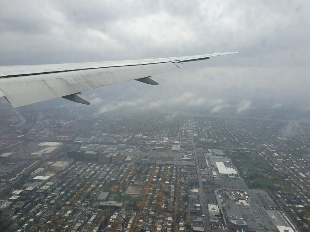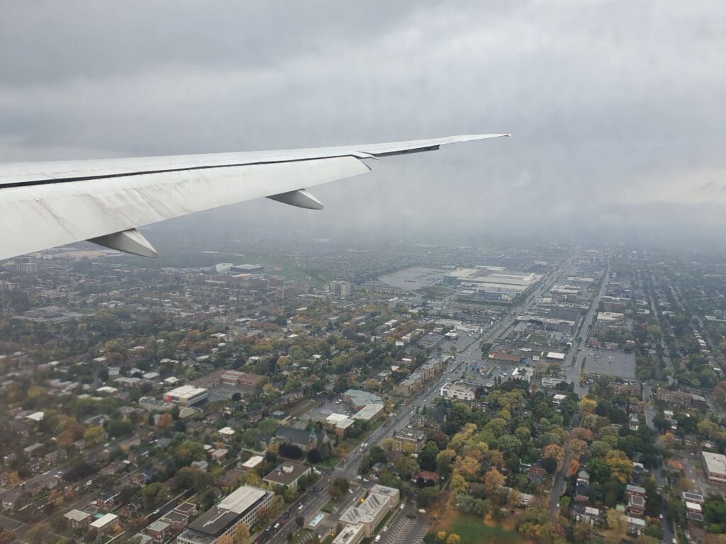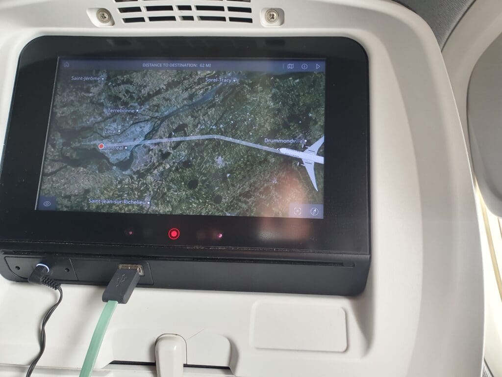 Upon arriving at Québec’s Anticosti Island, the clouds rolled in below leaving nothing to be seen of the province’s Gaspé Peninsula. From there, the aircraft temporarily crossed into the skies over New Brunswick, before heading into American airspace and passing over a small portion of northern Maine. At 1149 Montréal time, the seatbelt sign was reilluminated several minutes before re-entering Canadian airspace and a short time later, the words ‘30 minutes to landing’ rang out through the cabin. Upon hearing this, going against the seatbelt signs, several passengers stood up and made their way to the bathrooms, however, the crew did little to intervene. At 1157, the aircraft could be felt commencing its descent and thirteen minutes later the sight of long rectangular fields in between the towns of Drummondville and St-Hyacinthe could be seen below as the crew passed through the cabin ensuring all was in place for the aircraft’s arrival.