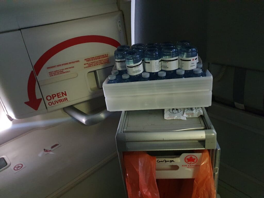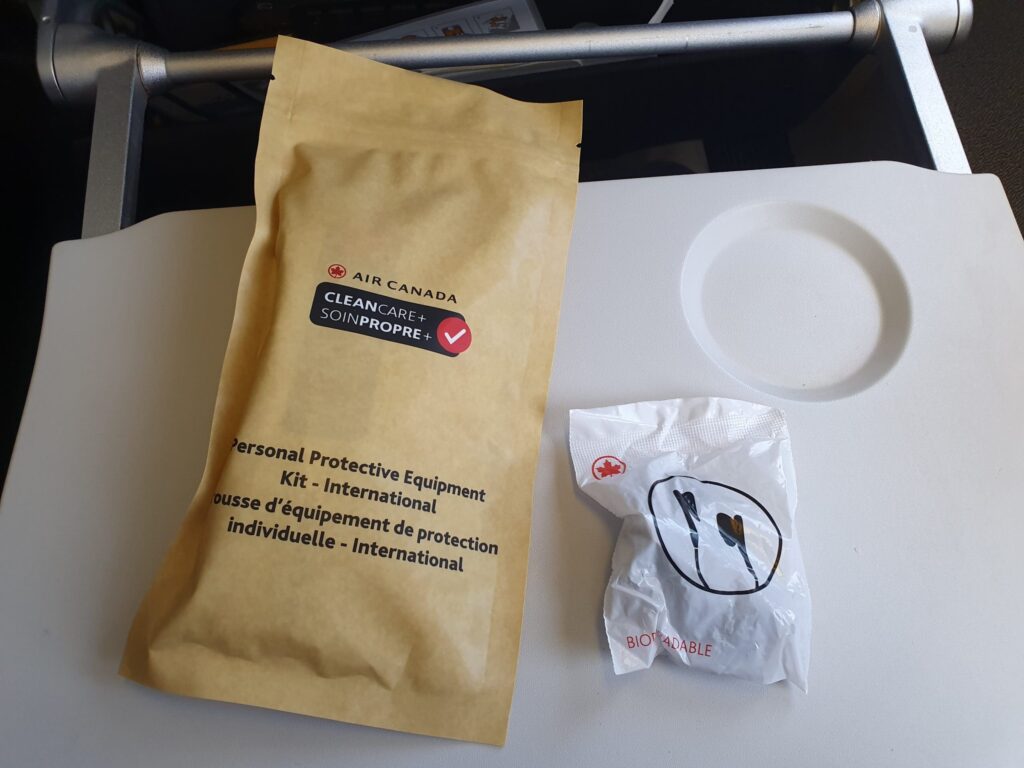 Despite the clouds that lingered around Frankfurt, the weather conditions over western Germany were fairly good that morning and the climb up to our cruising altitude brought with it nothing more than a few barely noticeable lumps and bumps. As soon as the aircraft passed through ten thousand feet, the pilots switched off the seatbelt signs. This was immediately followed by the usual announcement from the Service Director who advised passengers to keep seat belts on whilst seated, also requesting passengers to keep face masks on at all times other than when eating and drinking before ending this with a mention of the onboard wifi. As this announcement was being undertaken, several crew members passed through the cabin distributing Air Canada’s CleanCare+ kits, meanwhile, the familiar scent of warming inflight meals began to waft through the cabin indicating that the flight’s lunch service was soon to commence.