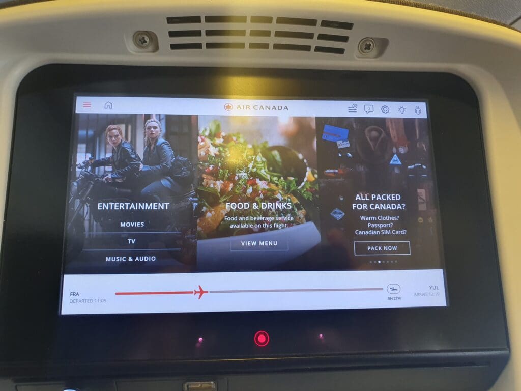 With little to see below, I decided to turn to the inflight entertainment system as the aircraft commenced its oceanic crossing. Catering to passengers from across Air Canada’s global route network, I was pleased to find the system to be offered in fifteen different languages. In terms of content, at the time of my flight, bored passengers could pass the time with an impressive list of 306 films from across the world, with plenty of television programmes, music playlists, audiobooks and several games also offered. I found that each film and television programme commenced with a couple of advertisements, although these were skippable. At the time of my flight one of these promoted Air Canada’s Aeroplan Visa Infinite card whilst the other advertised BMW. I also found the system to offer destination guides, the menu and beverage list for the flight, and plenty of information on Air Canada and its history.