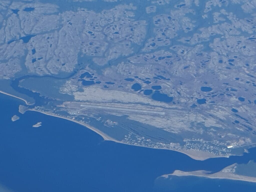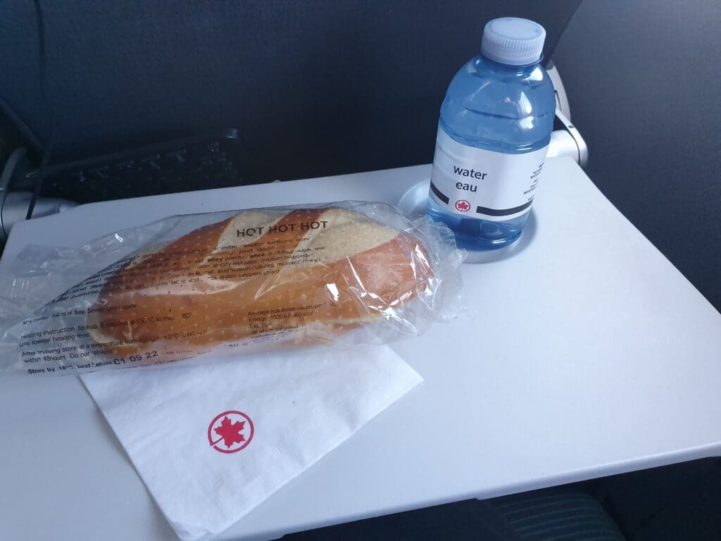 A short time after Canada came into view, an announcement was made regarding the commencement of the pre-arrival afternoon snack service. As I waited for this to commence, I spotted an airport near the Québec coastline which later research revealed to be Chevery Airport. At 1650 Frankfurt time, two crew members reached my row with one handing me a packaged sandwich, a small bottle of water and a serviette without a word, and the other asking ‘drink?’. Opting for an apple juice, without any further dialogue a small carton was then handed to me. Examining the sandwich, this consisted of a soft pretzel roll containing a slice of partially melted cheese, with the sandwich having been warmed up before cooling down before distribution. Whilst the sandwich was hardly the pinnacle of gastronomy, it was acceptable and left me with nothing to complain about.