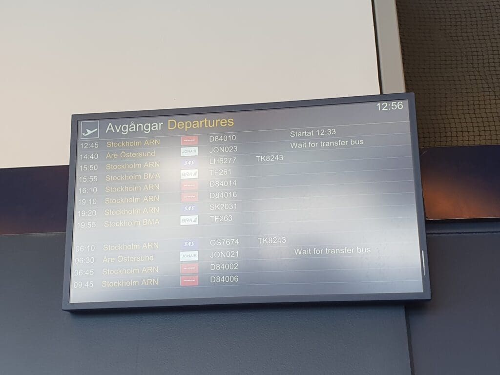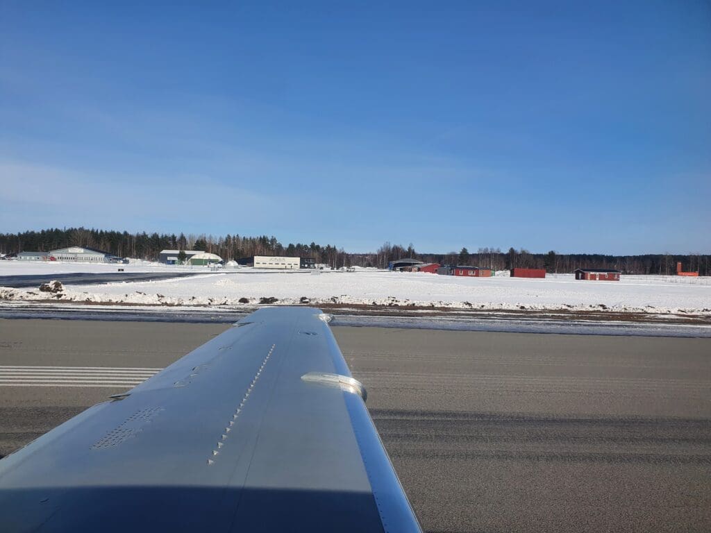 Following an enjoyable two hours spent touring Jonair’s hangar and offices and chatting with various staff members, the head of Jonair kindly delivered me to Umeå Airport’s small terminal building with almost four hours to go until the flight’s 1440 departure time. Seeing as I had plenty of time on my hands, I decided to go for a walk around the local area although within twenty minutes, hungry and freezing, I returned to the warm sanctuary of the terminal building. In 2019, a little over 960,000 passengers passed through Umeå Airport, making this Sweden’s seventh busiest. For UK-based readers, this is a similar figure to the number of travellers that passed through Inverness Airport in the same year. On the day of my flight, a Tuesday, a total of fourteen scheduled passenger services would depart from Umeå. The vast majority of these took the form of Norwegian and Scandinavian Airlines services to Stockholm Arlanda, in addition to three flights to Stockholm Bromma operated by Swedish regional carrier BRA, and of course Jonair’s two departures to Östersund. Of these, the only passenger departure before my flight would be an Arlanda-bound Norwegian Boeing 737-800 and with this considered, that day the landside portion of the terminal seemed to be fairly quiet, with few passengers and visitors seen mingling about.