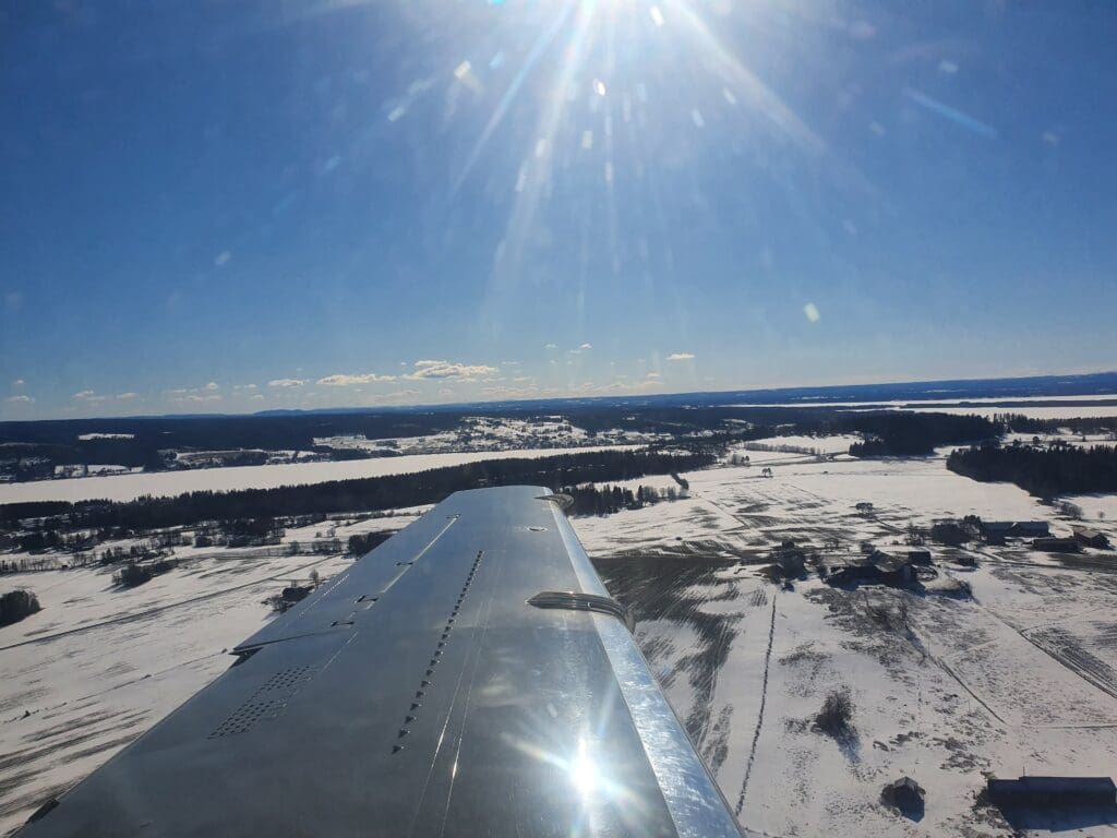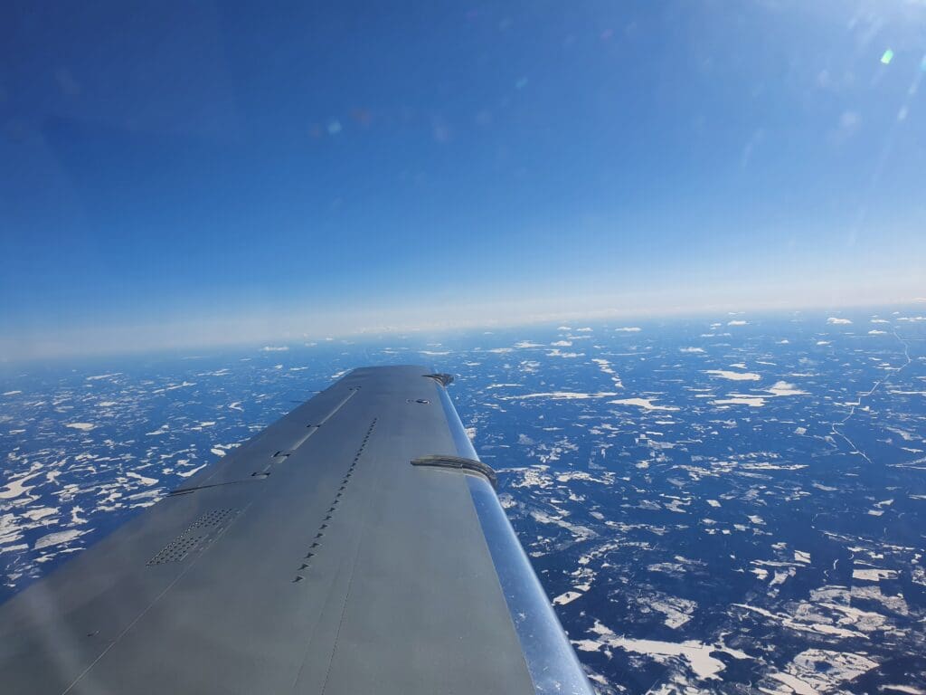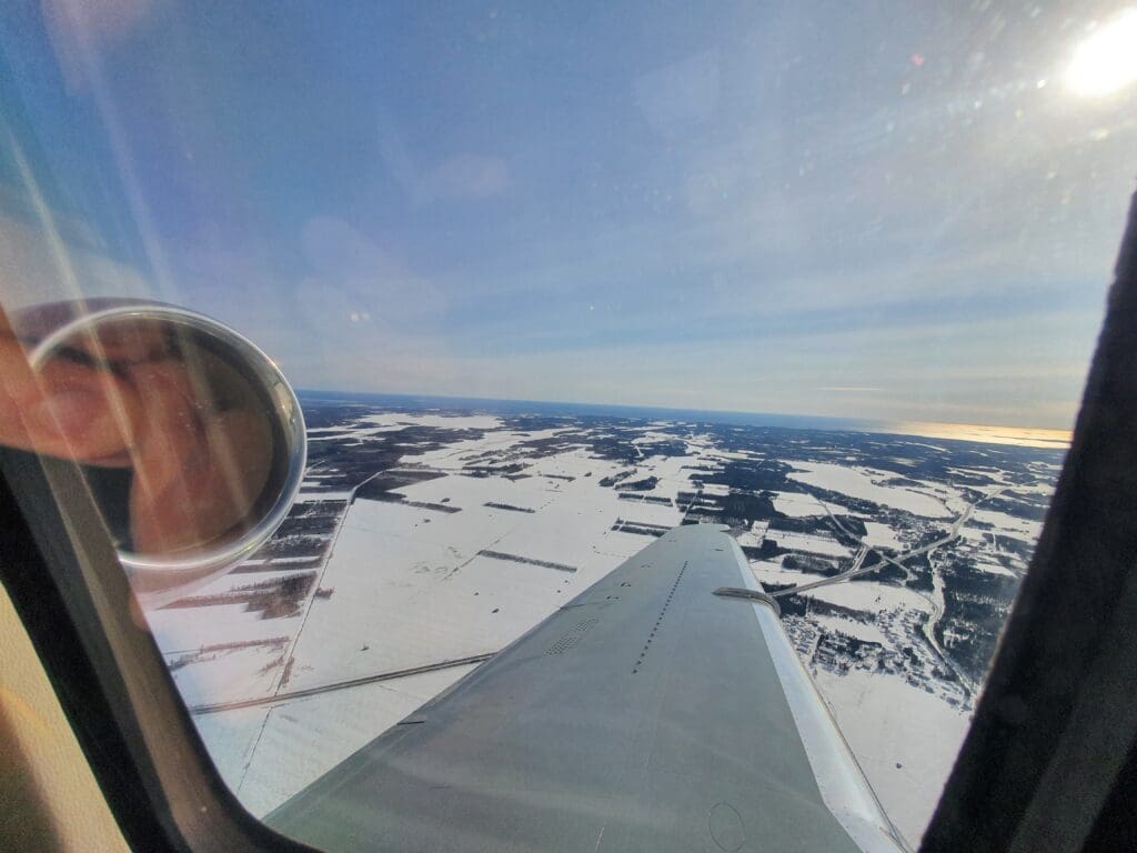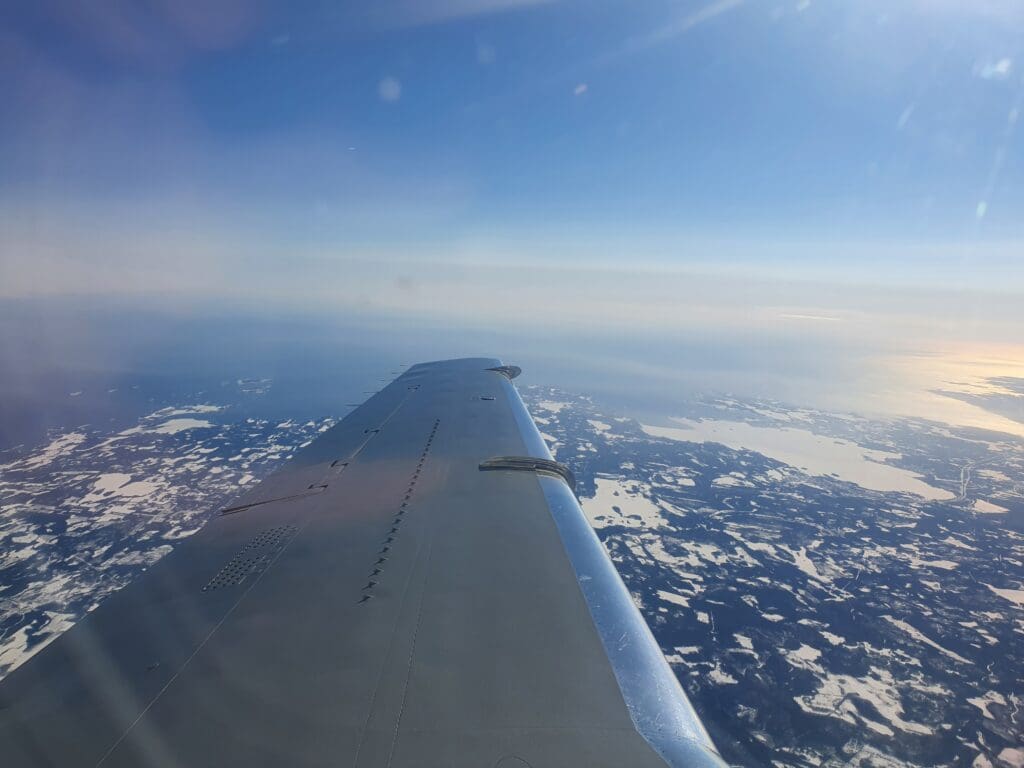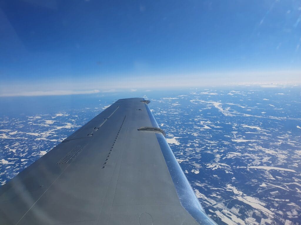 For those on the right-hand side of the aircraft, the initial climb out would have likely resulted in good views of the airport and the banks of the Ume River, shortly followed by the buildings of downtown Umeå. However, from my seat, I was instead provided with vistas of the mostly flat picturesque countryside to the south of Umeå consisting of snow-covered fields, forests and frozen lakes. In addition during the first few minutes of the flight, the chilly waters of the Baltic Sea could also be seen in the distance. A short time after departure, the Citation banked to the left before rolling out on a heading of approximately 254 degrees, taking the aircraft straight to Östersund with minimal changes in course required to get us there. Except for a few bumps almost immediately after taking to the skies, that afternoon the Citation’s quick climb was incredibly smooth and so a few minutes later, a loud ‘ding-dong’ could be heard as the seatbelt sign at the front of the cabin was extinguished.