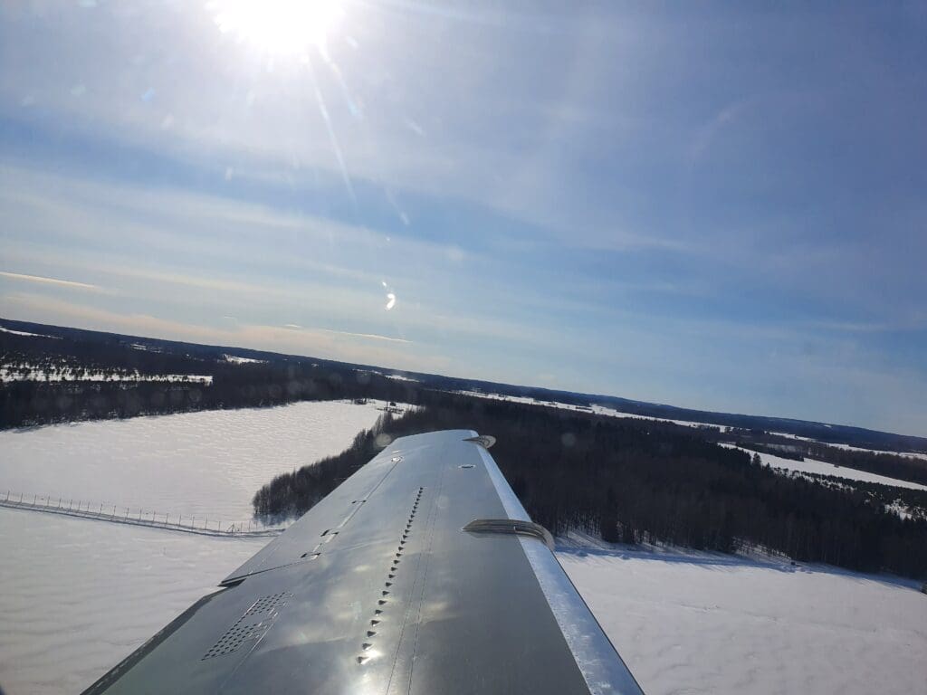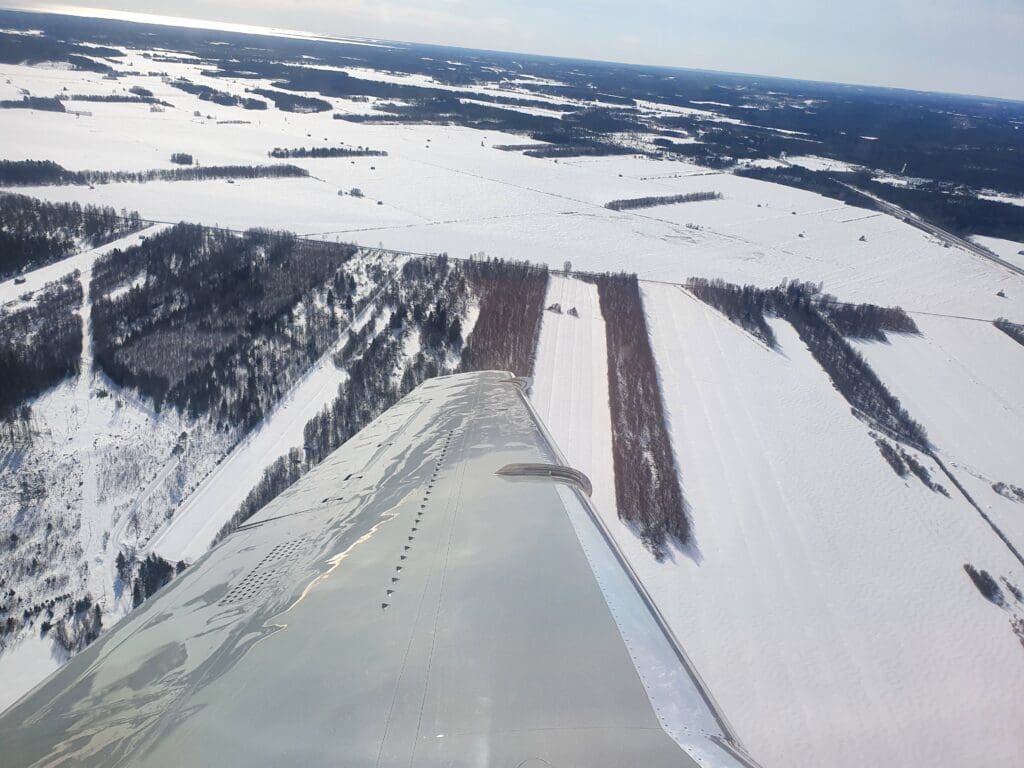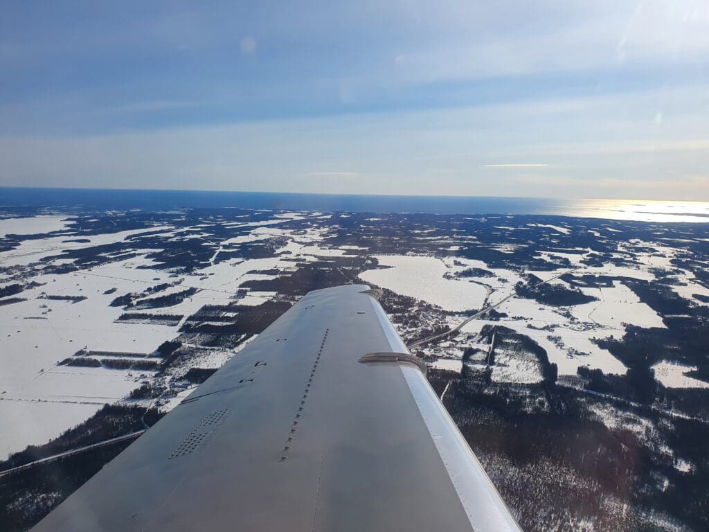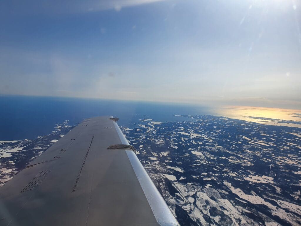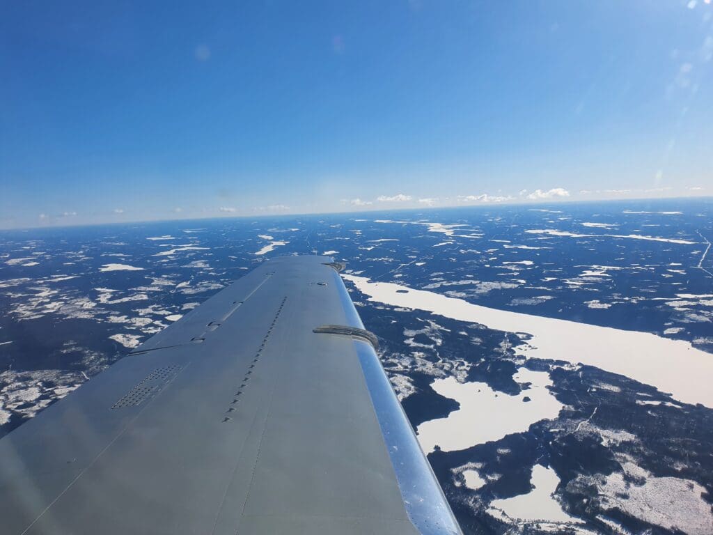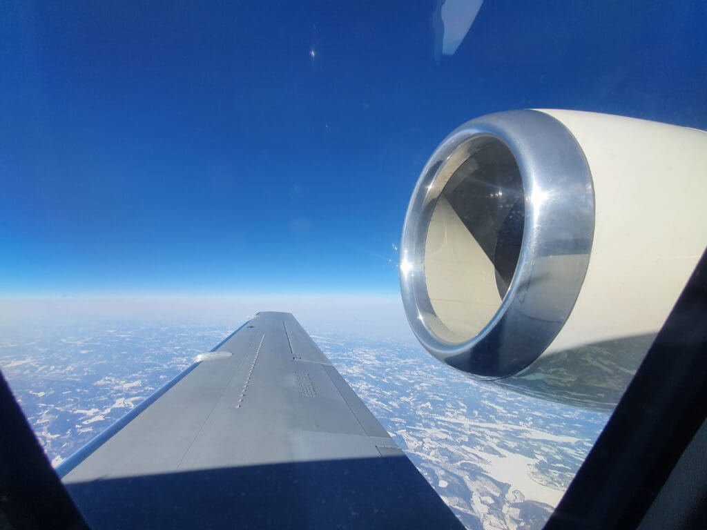 For those on the right-hand side of the aircraft, the initial climb out would have likely resulted in good views of the airport and the banks of the Ume River, shortly followed by the buildings of downtown Umeå. However, from my seat, I was instead provided with vistas of the mostly flat picturesque countryside to the south of Umeå consisting of snow-covered fields, forests and frozen lakes. In addition during the first few minutes of the flight, the chilly waters of the Baltic Sea could also be seen in the distance. A short time after departure, the Citation banked to the left before rolling out on a heading of approximately 254 degrees, taking the aircraft straight to Östersund with minimal changes in course required to get us there. Except for a few bumps almost immediately after taking to the skies, that afternoon the Citation’s quick climb was incredibly smooth and so a few minutes later, a loud ‘ding-dong’ could be heard as the seatbelt sign at the front of the cabin was extinguished.