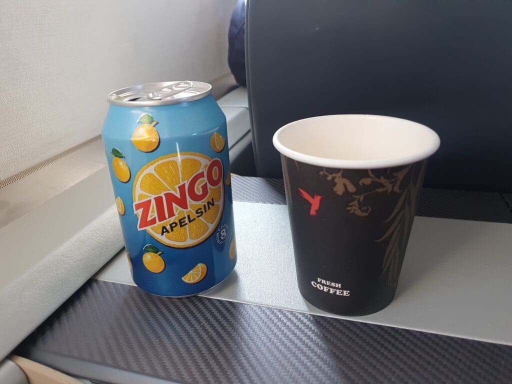 Unlike on the morning Beechcraft service during which passengers rejected the complimentary hot drinks and remained firmly in their seats for the duration of the flight, that afternoon, once the seatbelt signs had been extinguished a fair number of passengers decided to help themselves to the selection of complimentary drinks placed in the compartments at the front of the cabin. Seeking to make the most of the experience, as the aircraft neared its cruising altitude I cautiously slinked up through the cabin, taking care not to inadvertently walk into my fellow passengers’ arms and shoulders before arriving at the galley area that sits between the cockpit and cabin. There, plenty of compartments could be seen and after opening up several of these to no avail, I eventually discovered the loot. That afternoon one compartment contained 330ml cans of 7-Up, Coca-Cola, Zingo sparkling orange and various flavours of Loka sparkling water, whilst another contained bottles of Perrier sparkling water. On the compartment to the right, a jug of hot water could be found alongside tea bags, hot chocolate and coffee sachets. Whilst I imagine that those who charter the aircraft are offered real glasses and mugs, for us ‘regular’ passengers paper coffee cups were provided. All-in-all, I thought that this was a good selection given the length of the flight.