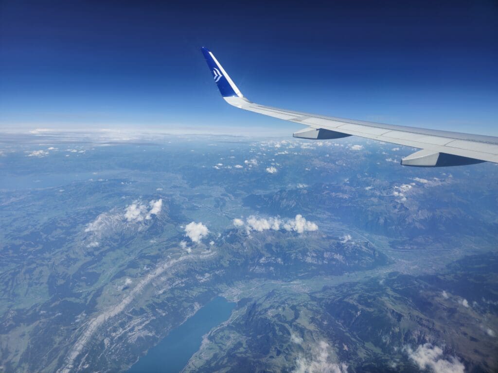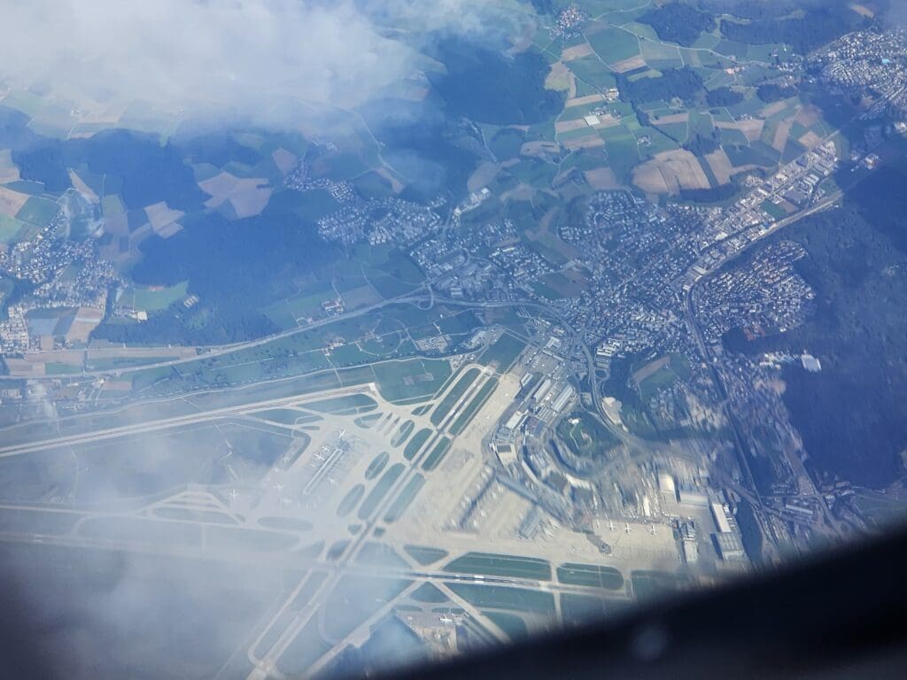 Around ten minutes after the first attempt at the onboard service had been made, the seatbelt signs were extinguished, and the crew took to the aisles once more. With one cart loaded with food and the other with drinks, the service commenced from the front of the aircraft, and the crew slowly but surely worked their way rearwards. As I waited, the clouds parted below and revealed the French city of Strasbourg before we crossed over the Rhine and flew over the hills of the German state of Baden-Württemberg. That afternoon, our time in German airspace was to be very brief and just four minutes after entering this, the Airbus crossed into Swiss skies just to the northwest of Zurich.
