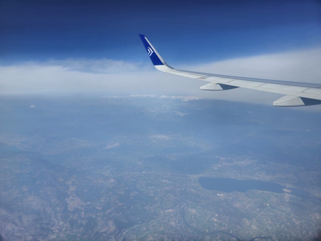 Once strapped in, passengers continued to stream onto the aircraft, and it wasn’t long before the two seats next to me were filled. Flying at the very end of England’s school holidays, unsurprisingly, there were few families onboard, with most passengers coming in the form of older tourists jetting off on long weekends to Athens. With Birmingham perhaps not being the most visited destination amongst those travelling from Greece, most passengers seemed to hail from the UK. At 1125, boarding was announced as complete, and a short time later, the Captain’s calm-sounding voice filled the cabin as they performed their barely audible welcome announcement in Greek and English. During this, they introduced themselves and the First Officer, informed us all of the 30-degree weather in Athens, provided a brief overview of the route and mentioned that we could expect a 3H20 flight time on our journey to the Greek capital.