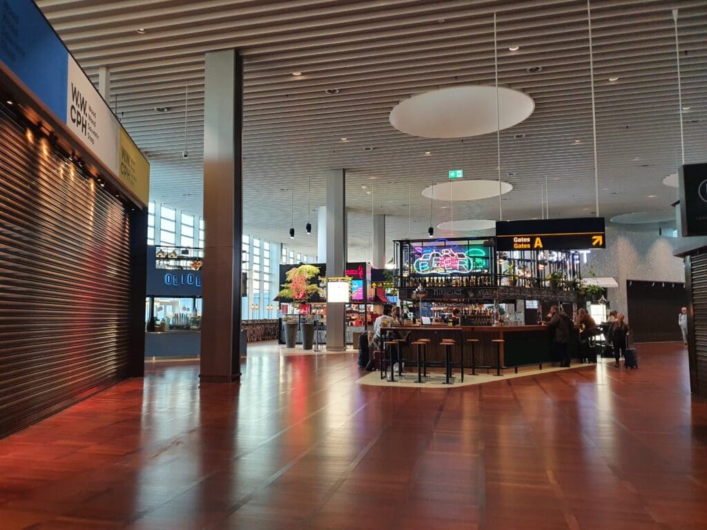 Predicting that I would lack the energy to do so the following morning and that most of the terminal’s facilities would be locked up overnight, upon arriving in the airside portion of the terminal I decided to have a good walk around. This would enable me to see what’s what in the terminal, and also scout some suitable locations where I could spend the night. Inside, Copenhagen Airport features five different piers and with each of these appearing to have been constructed at a different time, inside, each of these has notable changes in their style and design. However, whilst some may complain about the non-uniformity, I thought this made the airport a little more interesting. Inside, each pier seemed to be modern and stylish in design and importantly appeared to be clean and tidy. In terms of facilities, I found the airside portion of Copenhagen Airport to be home to a good number of shops, restaurants, cafes and bars, with plenty on offer to keep those with cash to splash entertained and fed. However, options for those on a budget, as they are in many international hubs across the world, were highly limited – convenience stores were limited to 7-Eleven and WHSmiths, however, even these were far from cheap. With no 7-Elevens to visit in the UK, I decided to pay a visit to the local branch. Interestingly, this appeared to be a newly opened pilot store without staff, whereby you magically tap your contactless card upon entry, pick up your items and then walk out of the store. As you exit this, the system magically works out those items that you have picked up, totals these up and then charges your card. Turning to cafés, some passengers may be disappointed to find that the terminal is devoid of even a single branch of a ‘real’ branch of Starbucks, although plenty of unmanned Starbucks vending machines could be seen throughout the terminal. However in true Danish style, the airport appeared to have perhaps the highest concentration of Ole and Steen outlets anywhere in the world, and it appeared that wherever I roamed within the terminals, I was never more than about two seconds away from one of these!