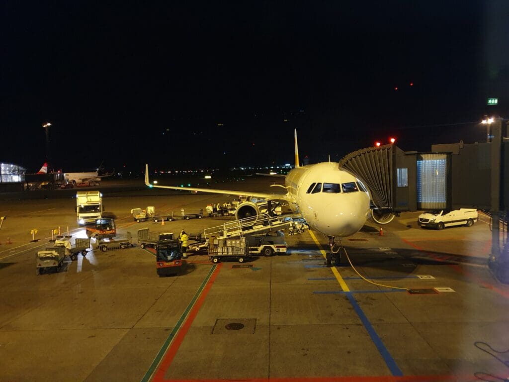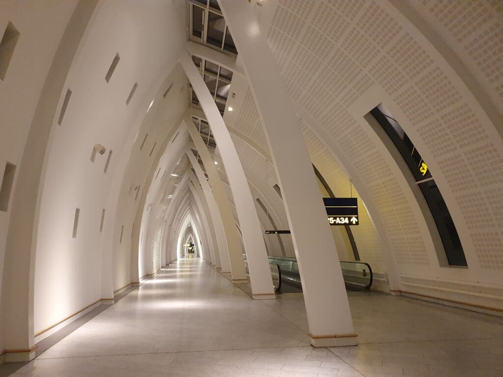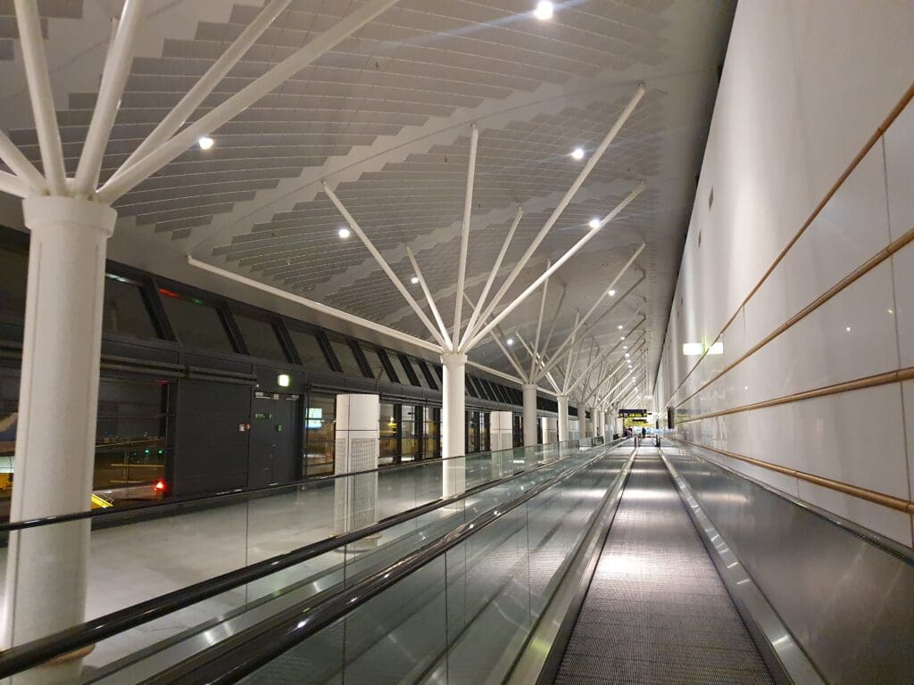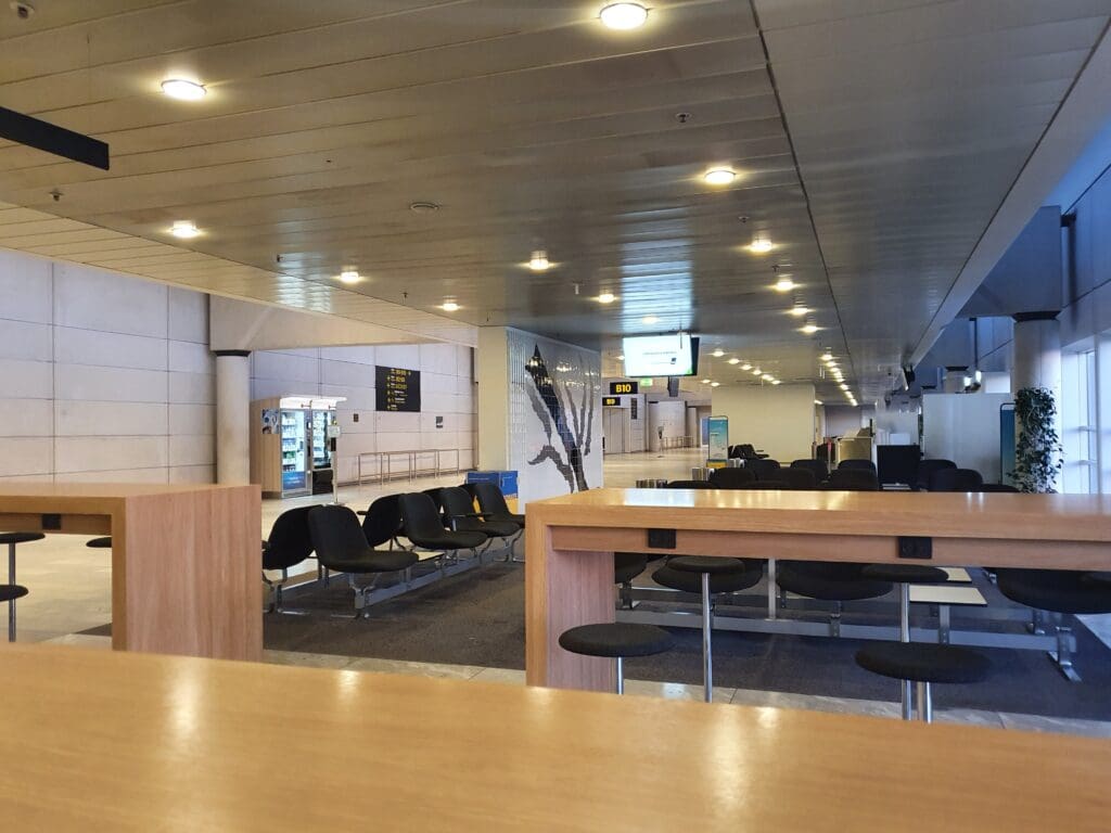 As the day gradually transitioned to night, I watched as narrowbody aircraft departed and arrived from destinations across Europe, whilst the clear May skies offered a picturesque backdrop of yellow, orange and pink before the sun finally sank below the horizon. As was to be expected, as the list of departures for that day on the departure boards shrank, the terminal quietened down and eventually ended up almost completely deserted. To my surprise, perhaps attributable to a good network of all-night transportation options running to the airport, comparatively few passengers appeared to be camping out in the terminal that evening with this being an absolute ghost town for a few hours. As I had expected, as far as I could tell all stores closed for the night and left just the terminal’s comprehensive network of vending machines on offer for those wanting something to eat or drink.