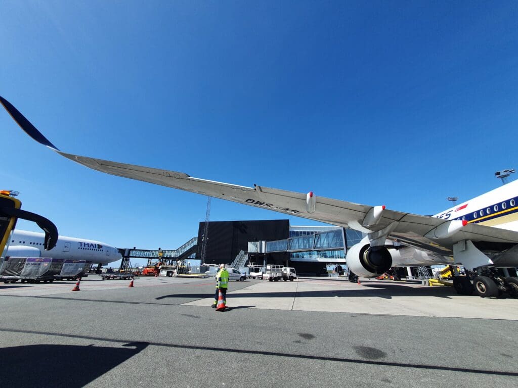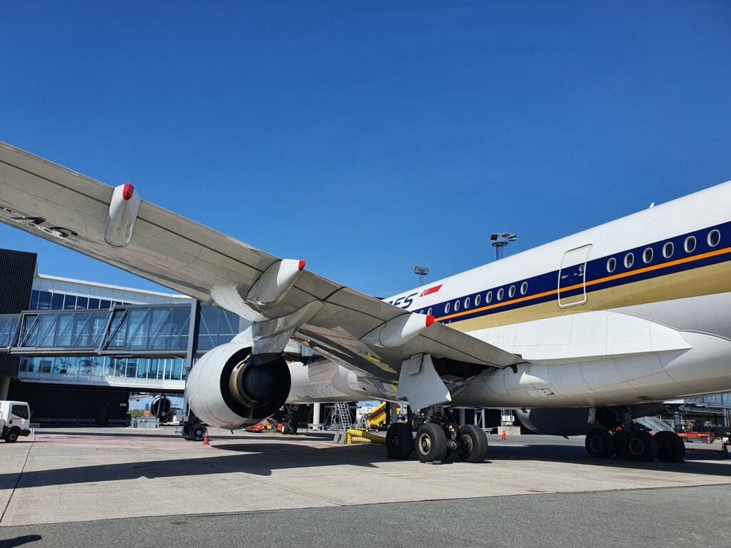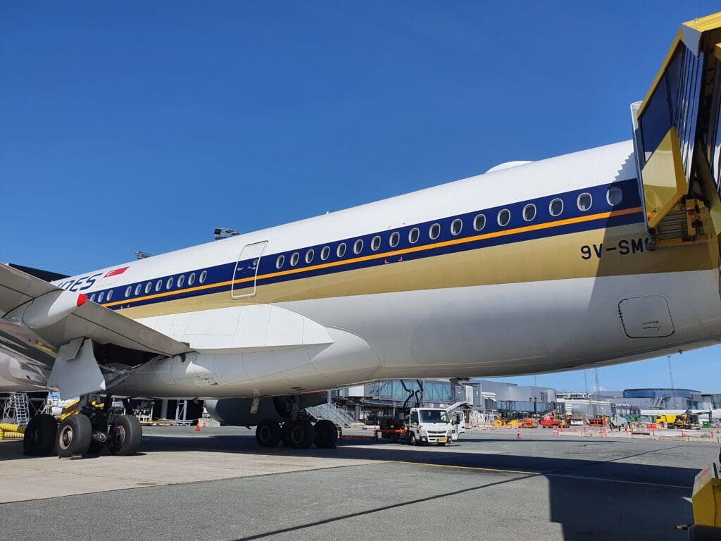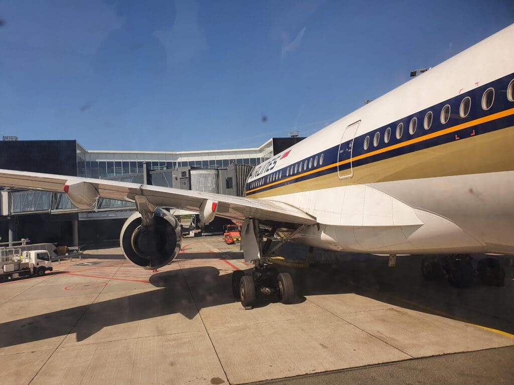 Running slightly behind schedule, at 0738 the Singaporean Airbus A350-941 touched down after its almost thirteen-hour overnight slog from Southeast Asia. That morning, this aircraft took the form of 9V-SMQ. Assembled at Airbus’ famous Toulouse Blagnac plant, this jet first took to the skies with the test registration F-WZGO in July 2017, making the aircraft almost five years old at the time of my flight. Following testing, the aircraft was formally handed over to Singapore Airlines in September of that year and settled in at its new home, Singapore Changi. Since then the aircraft appears to have had a mostly uneventful life shuttling passengers around the world. In the week before my flight the aircraft undertook a total of sixteen sectors, travelling over 44,000 miles, and visiting Cape Town, Copenhagen, Durban, Houston, Jakarta, Johannesburg, Kuala Lumpur and Manchester.