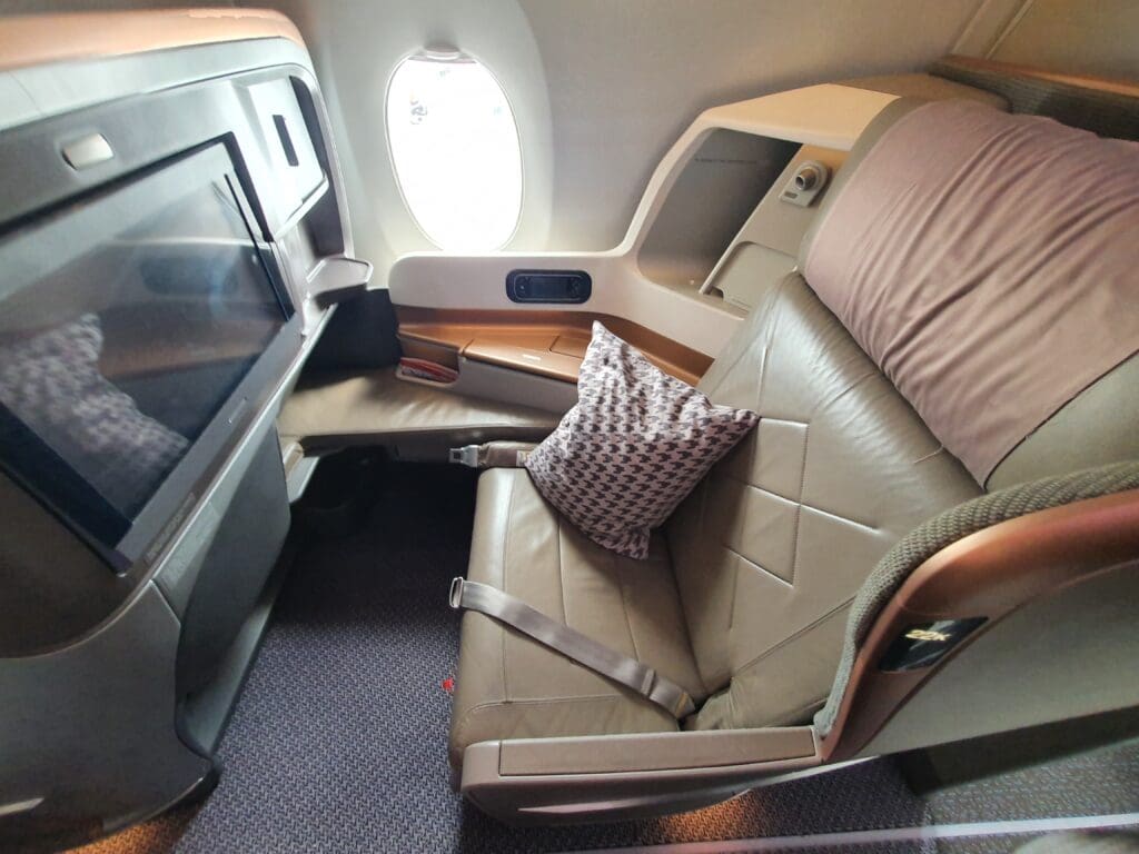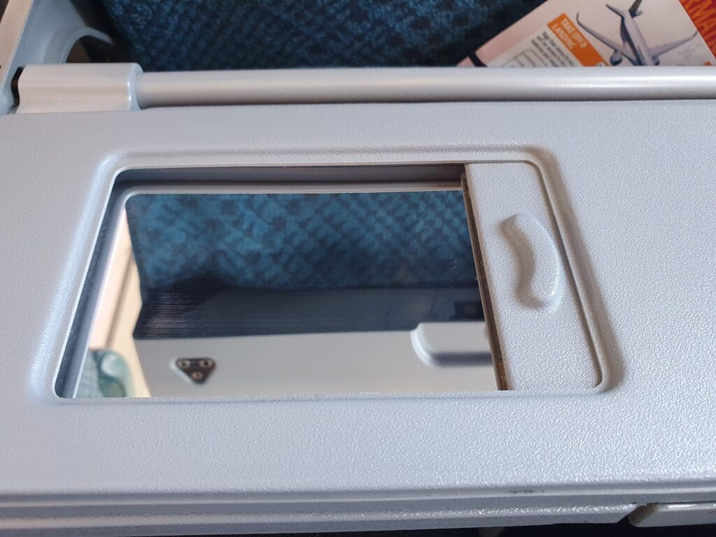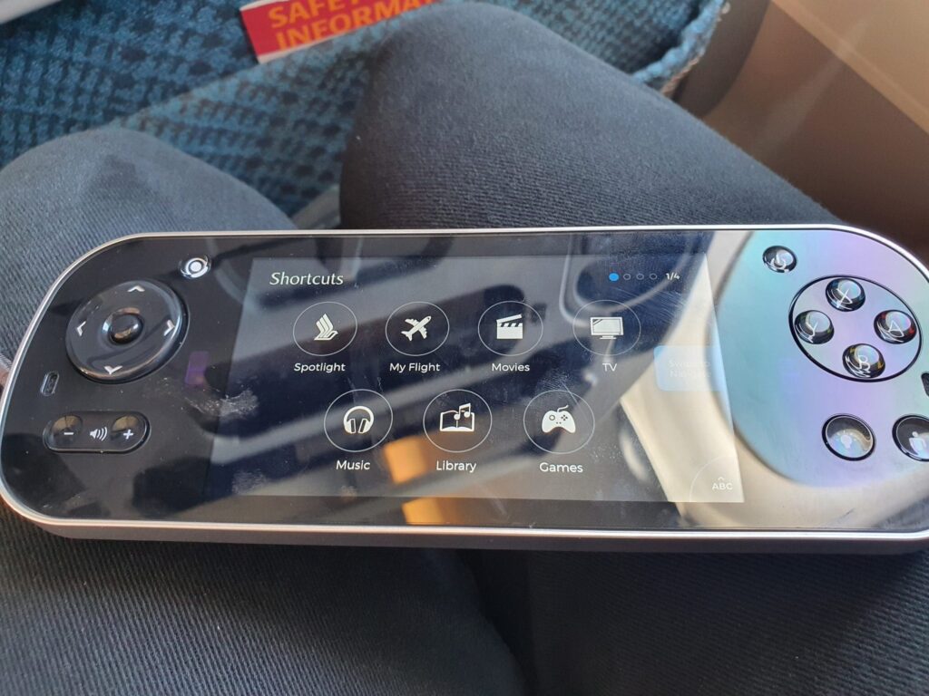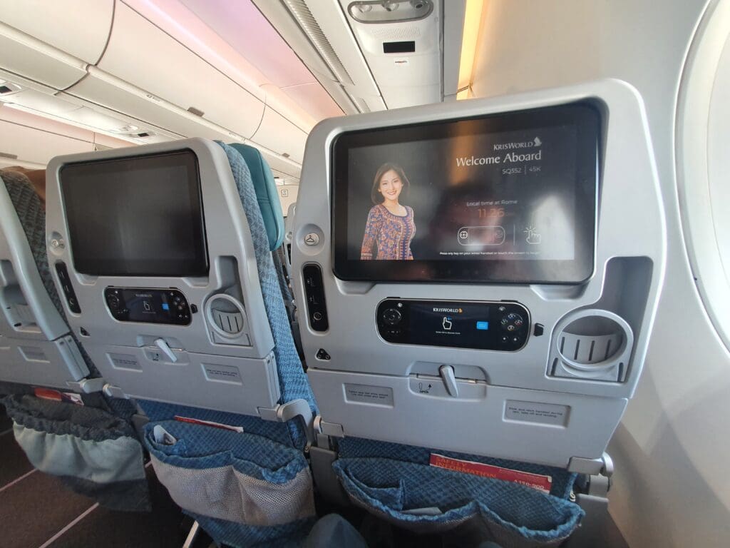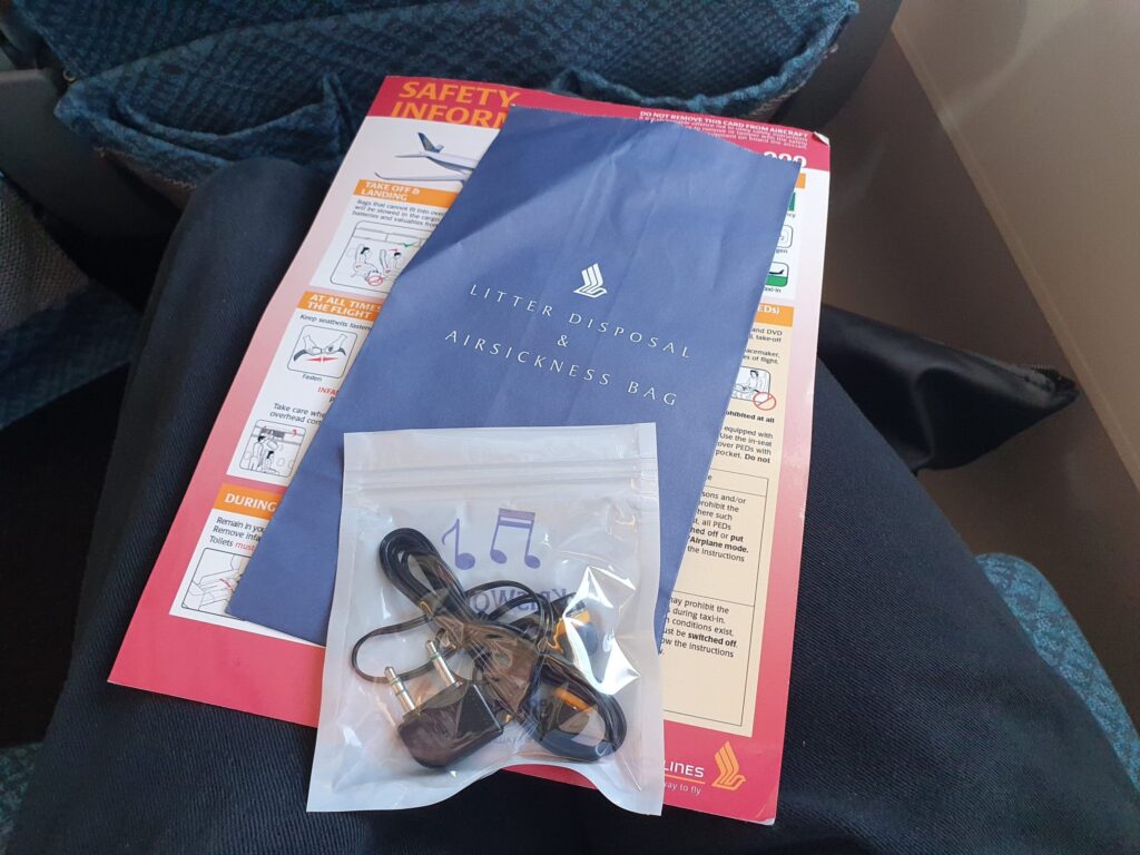Given Singapore Airlines’ stellar reputation, I had high expectations from the seat, and upon sitting down I was most certainly not disappointed. As one would hope, this was well padded and provided plenty of legroom – likely to prove comfortable enough on even the longest of Singapore Airlines’ services. In front of me sat a large and high-quality 11.1-inch wide personal screen powered by Thales’ AVANT inflight entertainment system. This was accompanied by a high-tech personal controller positioned just beneath the screen, whilst two USB ports and another mystery port named ‘iPod’ could be seen on the seatback whilst a plug socket could be found just beneath the seat – although unfortunately, I found this not to work during the flight. Finally, each Economy seat also featured a cup holder as well as a mirror located in the tray table. Meanwhile, two seatback pockets could be found, one of which contained the all-important safety card and a sickbag.