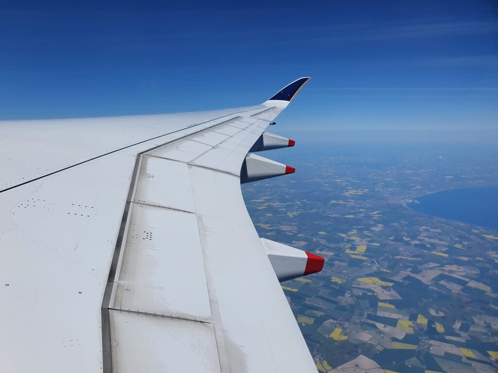 As the Airbus smoothly climbed over the islands of Southern Denmark, the clear skies ensured that fantastic views of the green rural landscapes could be had along with the occasional passing small town and village. A total of fifteen minutes after taking to the skies, the Airbus crossed over the Fehmarn Belt and left Danish airspace behind, soon reaching the German Island of Fehmarn From there, the aircraft made its way on towards the German mainland and passed over the Baltic coastline around halfway between the cities of Lübeck and Wismar. Once over the German mainland, the Airbus turned to fly almost directly southwards and trundled over Germany’s Mecklenburg-Vorpommern state however unfortunately it wasn’t long before clouds rolled in below ensuring that views of this were all but non-existent as we levelled off at our high cruising altitude of 41,000 feet.